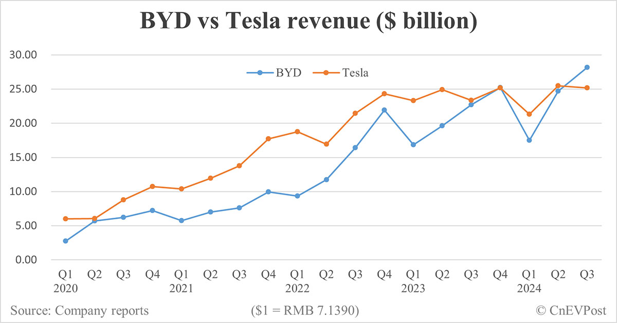 BYD vs Tesla revenue 2024