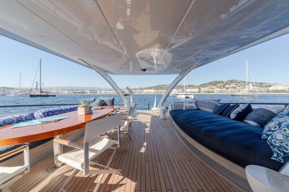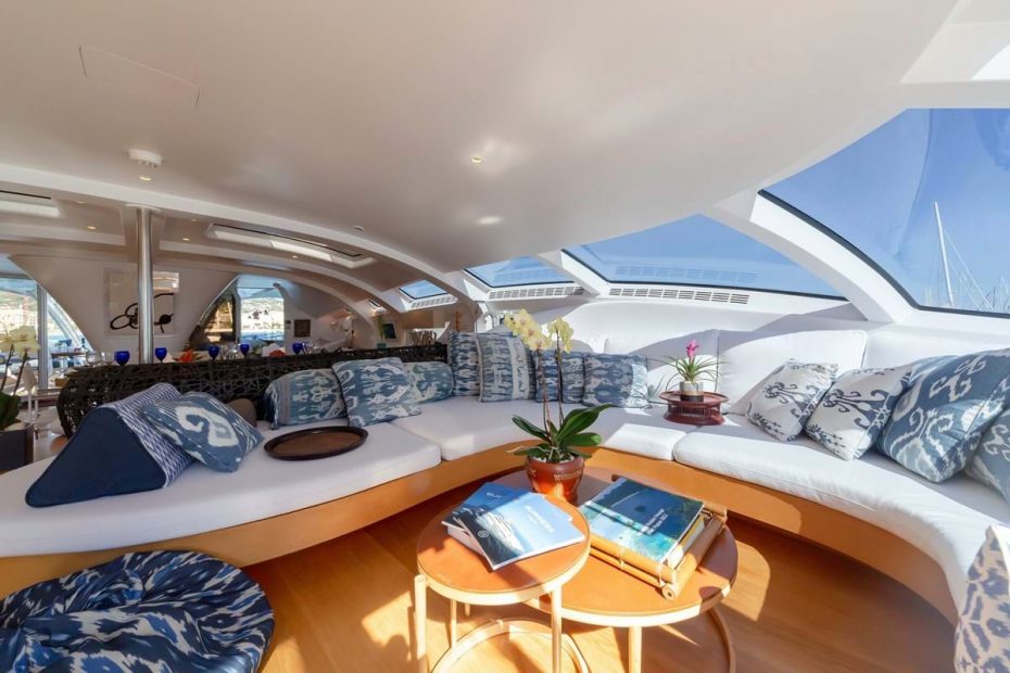 Jepen Designs ở Hong Kong chịu trách nhiệm cho phần nội thất trên Adastra. Không gian bên trong du thuyền làm người ta cảm giác như đang ở Santorini bên bờ Địa Trung Hải với hai tông màu trắng và xanh làm chủ đạo. Gỗ tếch đơn sắc sáng màu kết hợp cùng họa tiết Ma rốc ở toàn bộ vỏ gối khu vực sofa và 3 phòng ngủ mang đậm phong cách Moroccan.