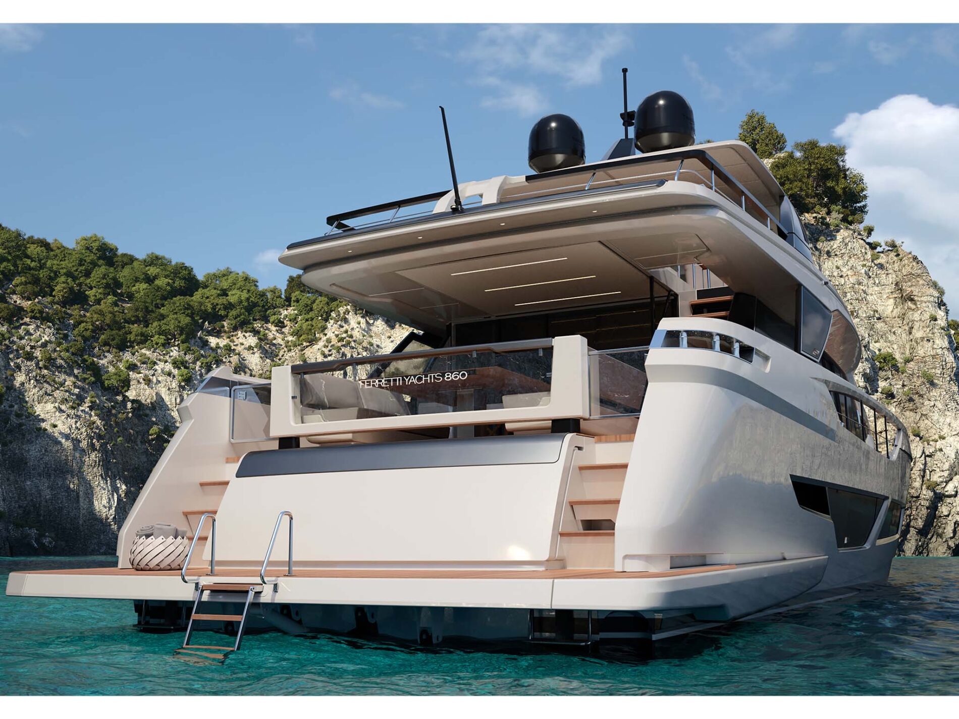 Ferretti Yachts đang phát triển chiếc 860, đây sẽ là mẫu du thuyền lớn thứ ba của nhà máy đóng tàu Cattolicabased sau chiếc 920 và chiếc flagship 1000 mới. Với chiều dài tổng thể là 88ft 5in, Ferretti Yachts