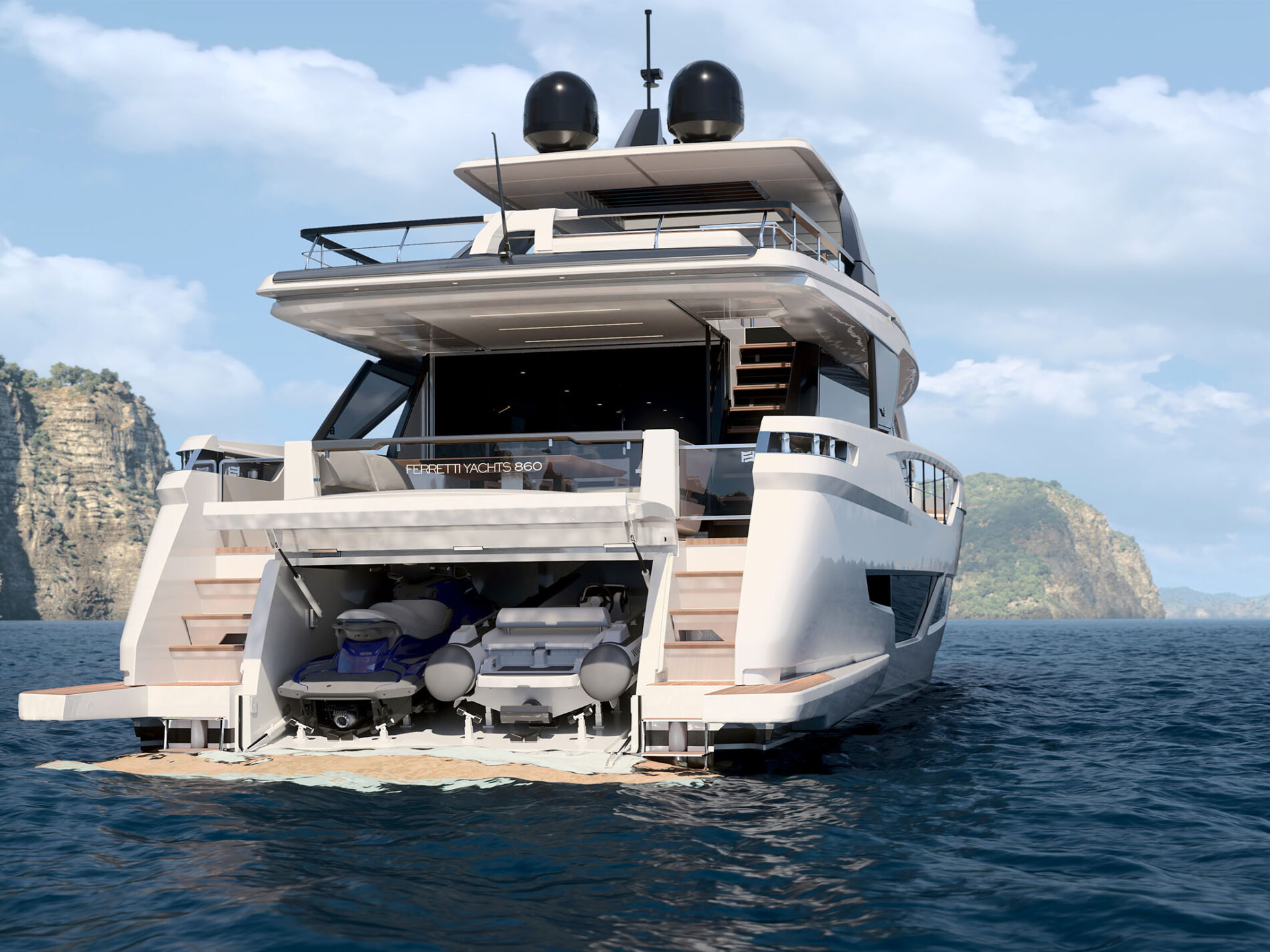 Tiếp nối chiếc flagship 1000, Ferretti Yachts 860 là mẫu du thuyền mới thứ ba của nhà chế tạo Ý có sự kết hợp thiết kế giữa Filippo Salvetti và IdeaeItalia.
