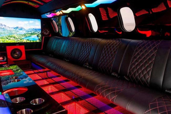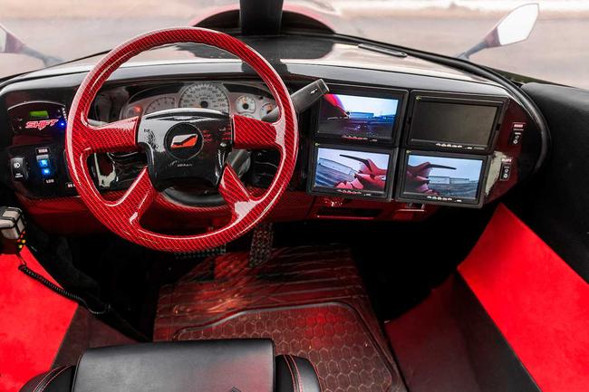 Vì bạn chủ yếu có thể đi dạo bên trong cabin của chiếc xe, nội thất của chiếc xe cũng được bố trí theo cách xa hoa và tiện nghi nhất có thể. TV màn hình phẳng ngồi phía trước và phía sau trong khi ghế da sang trọng xếp dọc bên, cung cấp chỗ ngồi cho một “phi hành đoàn” gồm 18 người. Một tấm sàn vô cực giả cũng được lắp đặt, trong khi loa được gắn trong các tua-bin cũng có thể phát các hiệu ứng âm thanh như động cơ phản lực.