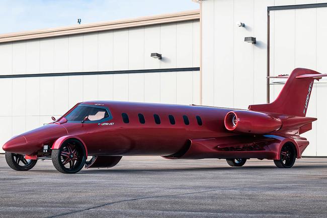 Được mệnh danh là Limo-Jet, được di chuyển hợp pháp trên đường (thực sự là vậy), đây là mẫu xe được chuyển đổi từ thân của một chiếc máy bay tư nhân Lear Jet. Có lẽ đya là một trong những ý tưởng xe limo ngông cuồng nhất từng xuất hiện ở bất cứ con đường nào trên thế giới ở thời điểm hiện tại. Theo báo cáo, các kỹ sư đã dùng thêm một tấn thép để thi công lại khung gầm và cấu trúc của máy bay phản lực, giúp nó phù hợp hơn với việc chạy trên đường, đưa trọng lượng của Limo-Jet lên tới hơn 4 tấn.
