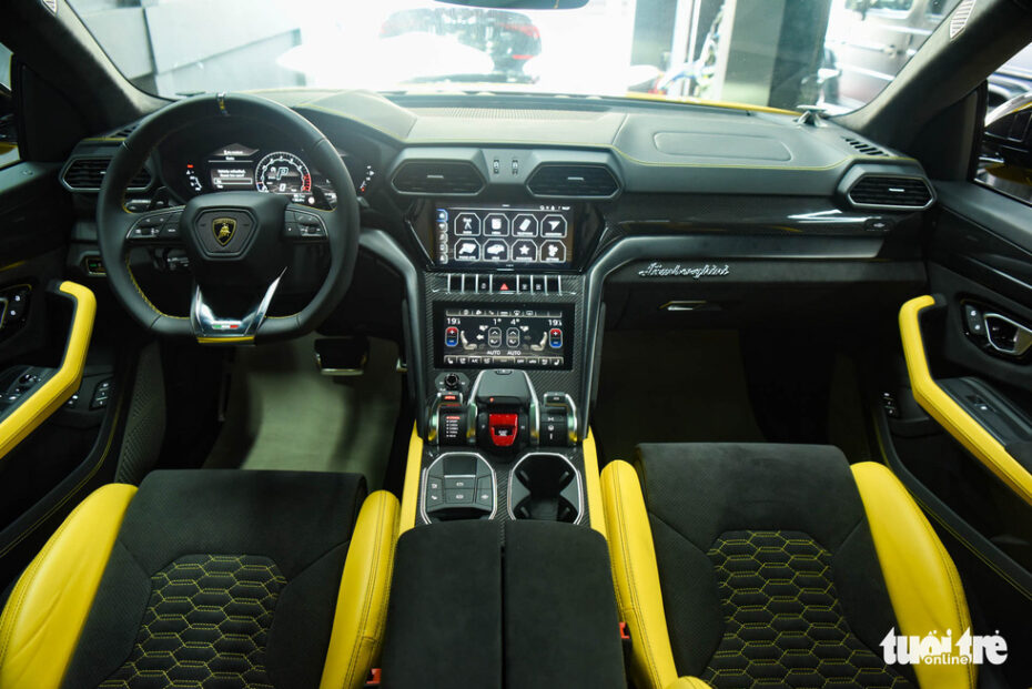 Hãng cho biết Pearl Capsule mang đến sự kết hợp hài hòa giữa màu sơn đơn sắc truyền thống và tính hiện đại của các mảng màu tương phản. Urus là một trong những siêu SUV đầu tiên trên thế giới mang đến cho khách hàng sự đa dụng, khả năng vận hành vượt trội. Mâm xe là loại hợp kim kích thước 23 inch sơn đen viền vàng với kẹp phanh màu đỏ và đĩa phanh gốm carbon hiệu năng cao. Bên cạnh đó, Lamborghini còn trang bị camera quan sát 360 ở hai bên hông xe.