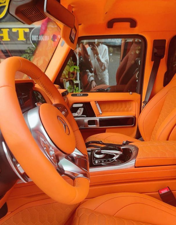 Mới đây, một tài khoản chuyên kinh doanh siêu xe có tiếng tại Sài Gòn đã đăng tải hình ảnh chiếc Mercedes-AMG G63 màu trắng, kèm dòng trạng thái rằng xe đã thuộc về một nữ doanh nhân Bến Tre. Đáng chú ý, chiếc G63 này sở hữu nội thất màu cam theo phong cách Hermes đang là trào lưu trong thời gian gần đây. Hiện trong nước còn có ba chiếc G63 khác có màu nội thất tương tự, trong đó có một chiếc của nữ ca sĩ Đoàn Di Băng. Nhiều khả năng chiếc G63 này đã được thay đổi màu nội thất bởi các thợ độ tại Việt Nam.