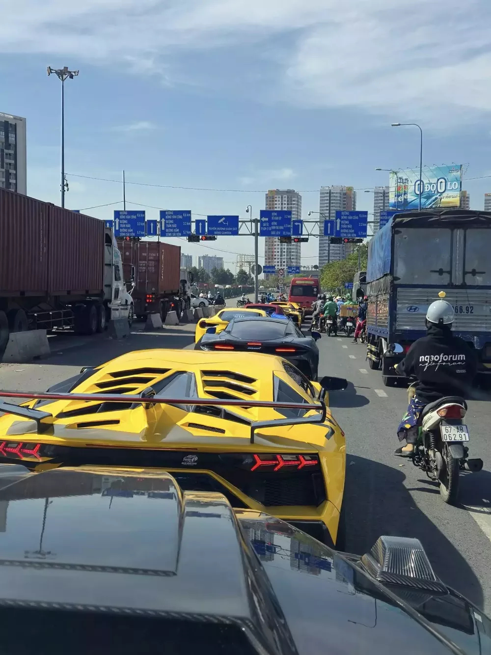 Trong hình ảnh đoàn siêu xe này chụp ở trạm dừng nghĩ trên cao tốc có 3 chiếc siêu xe của đại gia Hoàng Kim Khánh xuất hiện là Ferrari 488 Spider Spider, Lamborghini Aventador S LP740-4 và Ferrari SF90 Stradale, tuy nhiên, hình ảnh đoàn xe chụp ảnh chung ở Phan Thiết lại không xuất hiện.
