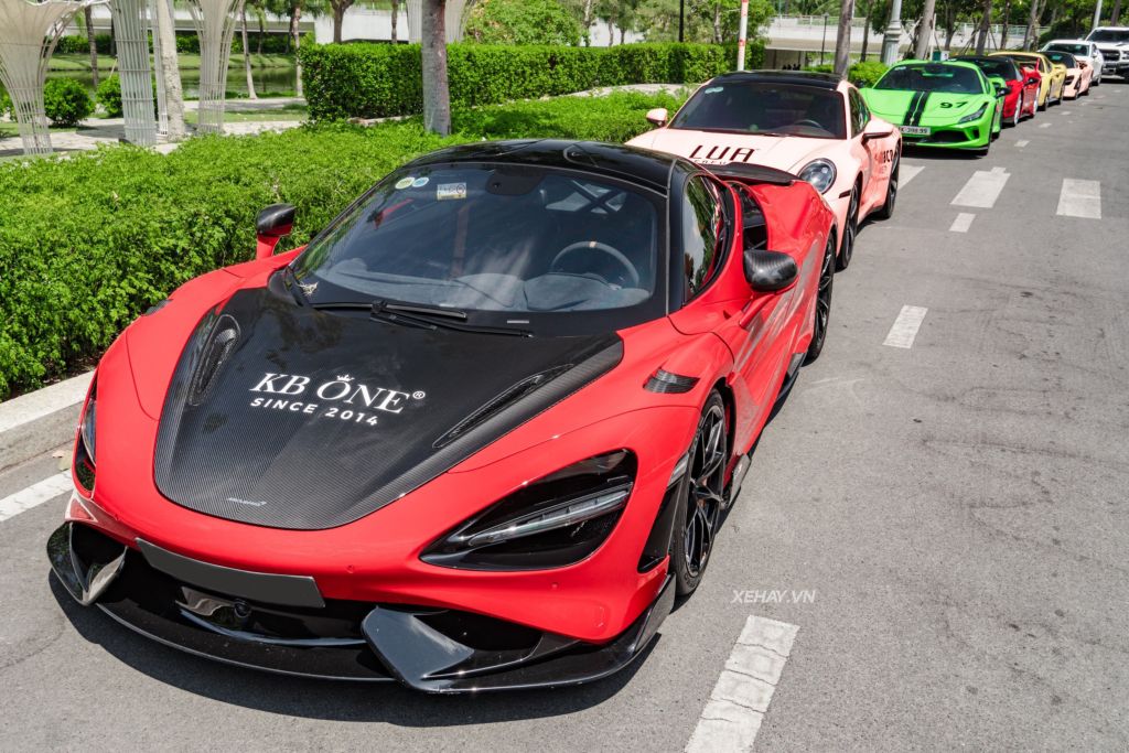 Khi mới về nước, siêu phẩm McLaren 765LT này sở hữu màu sơn Paris Blue nổi bật. Nhưng mới đây, xe đã được chủ nhân “lột xác”, khoác thêm “áo mới” màu đỏ cá tính. Trên nắp capo và hông xe còn được trang trí nhiều tem nổi, mang đậm dấu ấn cá nhân của chủ xe.
