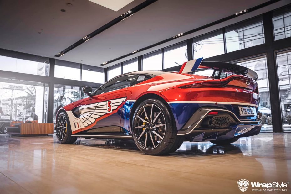 Cửa trái dán số 4, cửa phải dán số 5 và nắp ca-pô dán số 0. Logo Aston Martin dán 2 bên cửa tạo hình giống cánh chim. Cách trang trí số 405 được Minh “nhựa” áp dụng lên những chiếc xe khác cùng garage như Pagani Huayra, BMW Z4 hay Mercedes-AMG G63.