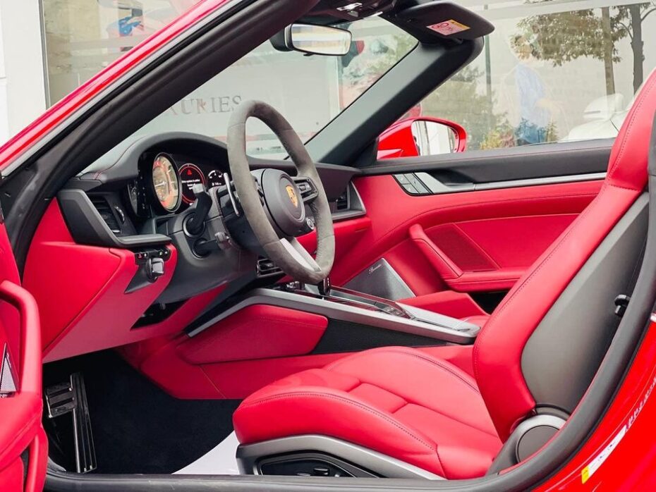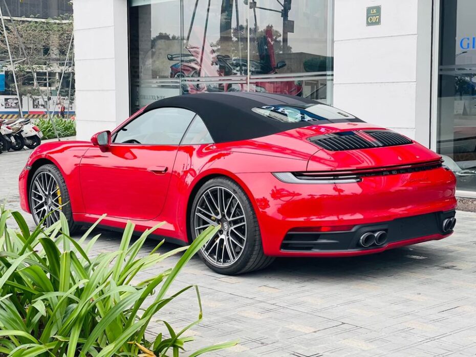 Chiếc Porsche 911 Carrera S Cabriolet màu đỏ từng được cộng đồng mê xe trong nước bàn tán khi chỉ riêng trang bị tùy chọn đã lên tới 3 tỷ VNĐ. Để tạo điểm nhấn, sọc kẻ kép tối màu trải dài từ nắp capo ra tới đuôi xe. Phần mui vải của xe có màu đen cũng xuất hiện chi tiết sọc kẻ tạo sự đồng bộ. Ngoài ra, bộ mâm 20 inch ở bánh trước và 21 inch ở bánh sau đã có giá 167,2 triệu VNĐ, đi kèm 4 cùm phanh vàng trên hệ thống phanh gốm–composite của Porsche (PCCB) cũng có giá 581,1 triệu VNĐ.
