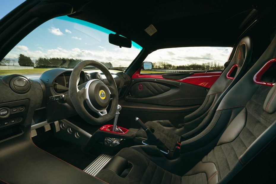 Vì là xe thể thao, nên phần nội thất của Lotus Exige Sport 420 Final Edition tương đối đơn giản, chỉ hướng tới trải nghiệm lái thuần chất, với vô-lăng không tích hợp nút bấm, cũng như không có màn hình giải trí trung tâm. Các thông tin cần thiết sẽ hiển thị trên màn hình sau vô-lăng.