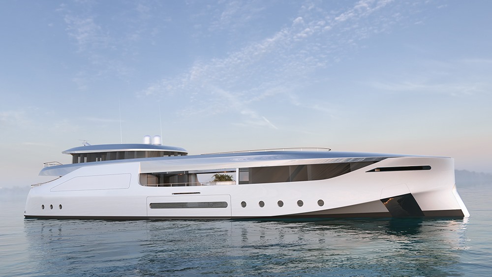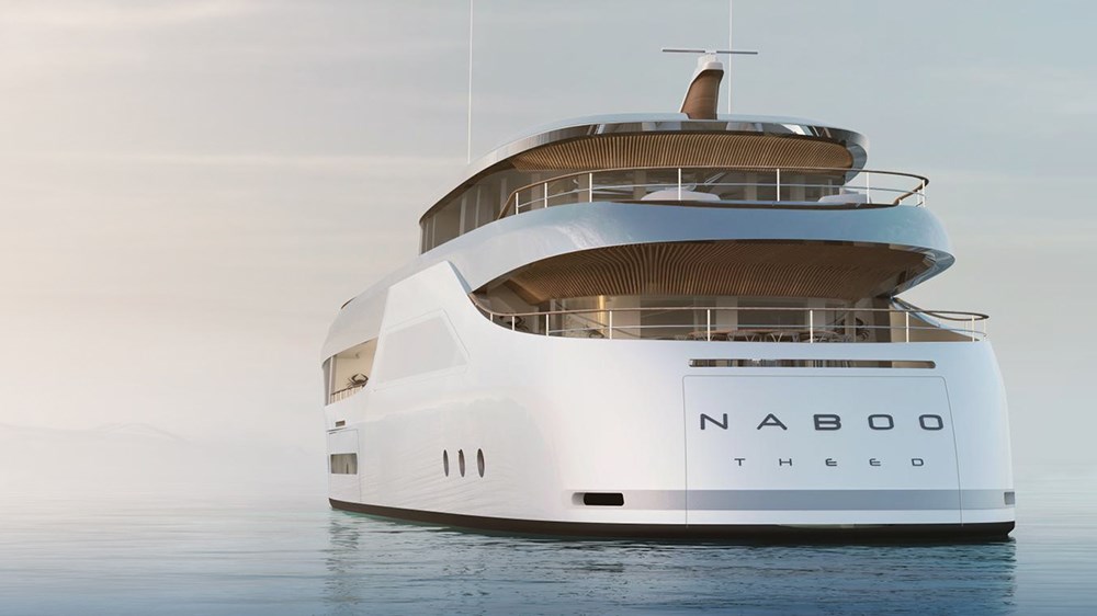 Naboo là ý tưởng thiết kế về một siêu du thuyền dài 164 feet, mang thân màu bạc, kiểu dáng uốn lượn tinh tế được rèn từ nhôm tái chế và được trang trí bằng các đường tròn mềm mại.