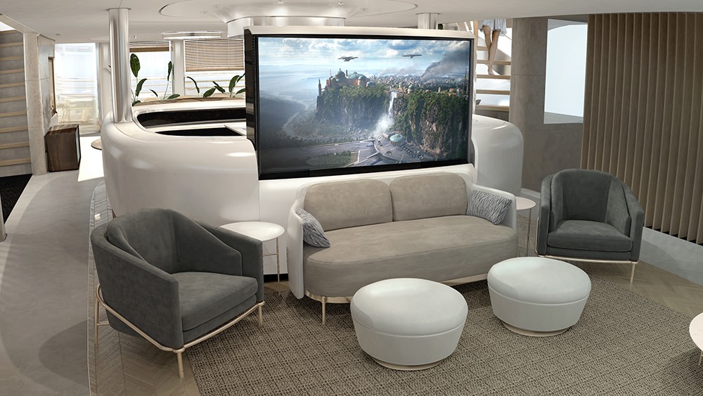 Đúng như tên gọi, siêu du thuyền này được lấy cảm hứng một phần từ bộ phim Chiến tranh giữa các vì sao. Naboo là một hành tinh hư cấu trong vũ trụ với địa hình xanh tươi từ loạt phim khoa học viễn tưởng.Do đó, nội thất tương lai của con tàu sẽ có nhiều cây xanh.
