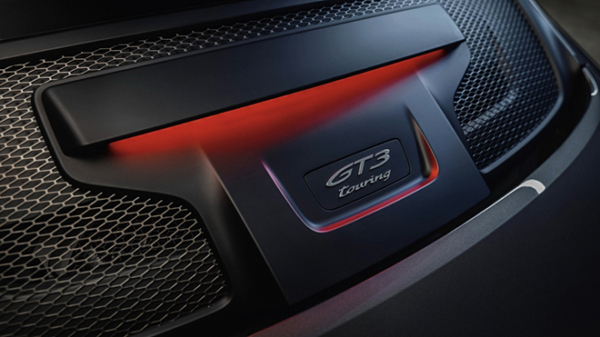 Về thiết kế, 911 GT3 Touring mới sở hữu phần lưới tản nhiệt được nâng cấp nhằm đạt hiệu suất cao hơn, viền cửa sổ trời màu bạc, ống xả màu bạc tiêu chuẩn hoặc phủ satin đen theo gói tùy chọn cùng logo GT3 Touring ngự trị tại cản sau.