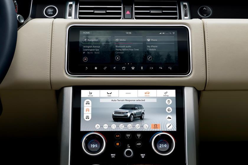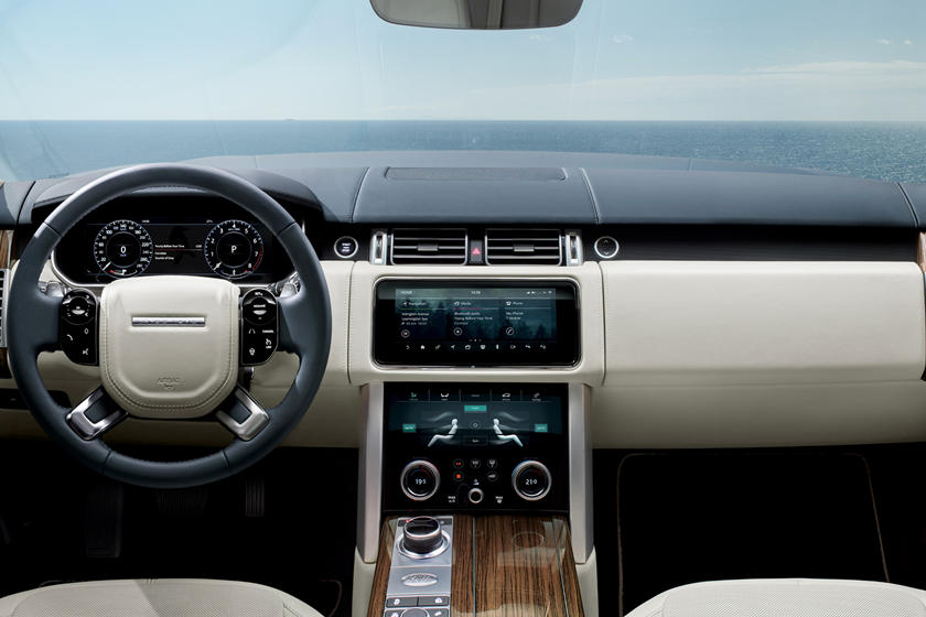 Nội thất tiết chế hơn khi Land Rover chọn tông màu đen. Ghế được bọc bằng da semi-anilin sang trọng và vẻ ngoài tối màu kéo dài đến phần đầu xe màu Ebony. Cỗ xe có cả bàn đạp bọc kim loại sáng.