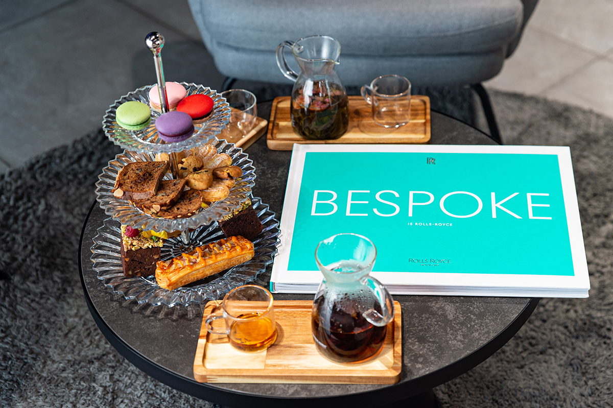 Không gian showroom Rolls-Royce Motor Cars Tp.HCM – nơi diễn ra những cuộc hẹn 1-1 với các vị khách để trò chuyện và hiểu rõ về nghệ thuật Bespoke tại Rolls-Royce. Tại đây, các vị khách được thếch đãi thức uống và bánh ngọt phù hợp với vị giác cá nhân, khám phá những sắc màu độc bản gắn bó với cảm xúc và kỷ niệm của chính mình.