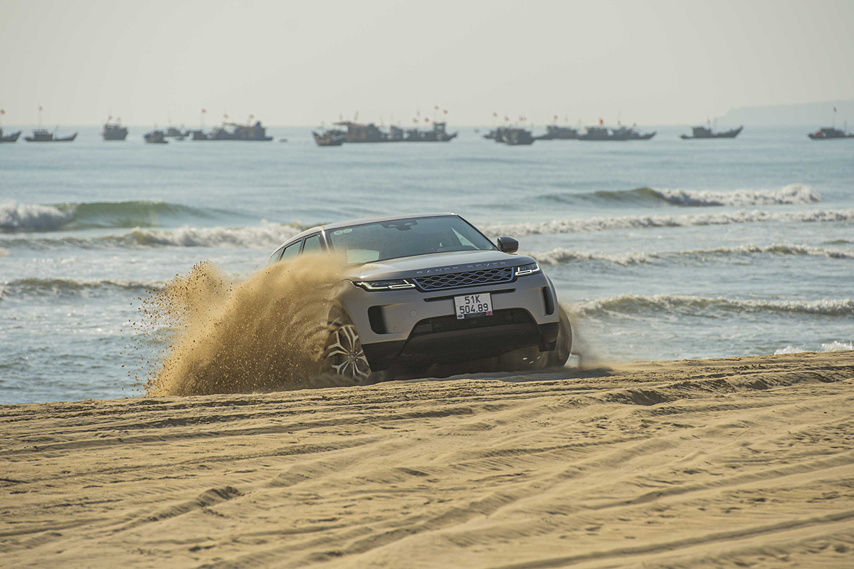 Sau khi đến Chu Lai và nghỉ ngơi tại một resort biển tuyệt đẹp, ngày hôm sau, tôi đã được tham gia các bài tập off-road trên các địa hình cát và tại bãi biển Nam Hội An. Đây là lần đầu tiên tôi lái xe trên cát, và phải nói là bản thân đã rất bất ngờ về khả năng off-road của các mẫu xe Range Rover này. Với kinh nghiệm cá nhân và những gì tôi quan sát được trên mạng xã hội, thú thật rằng thân tôi chưa bao giờ dám cầm lái xe của mình chạy trên cát cả.