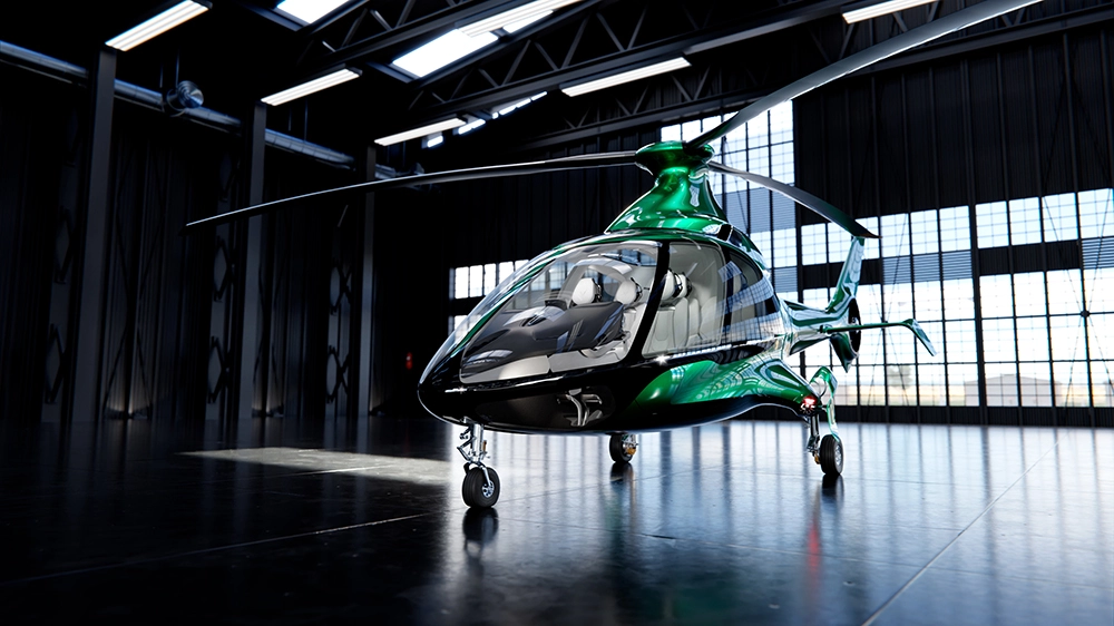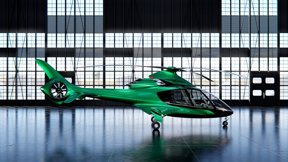 Hơn nữa, chiếc trực thăng còn trông giống như một phương tiện đến từ phim James Bond. Kiểu dáng đẹp, thân máy bay đậm chất tương lai có thể được hoàn thiện với nhiều màu sắc thu hút sự chú ý, bao gồm xanh lá cây, đỏ, cam, trắng và đen.