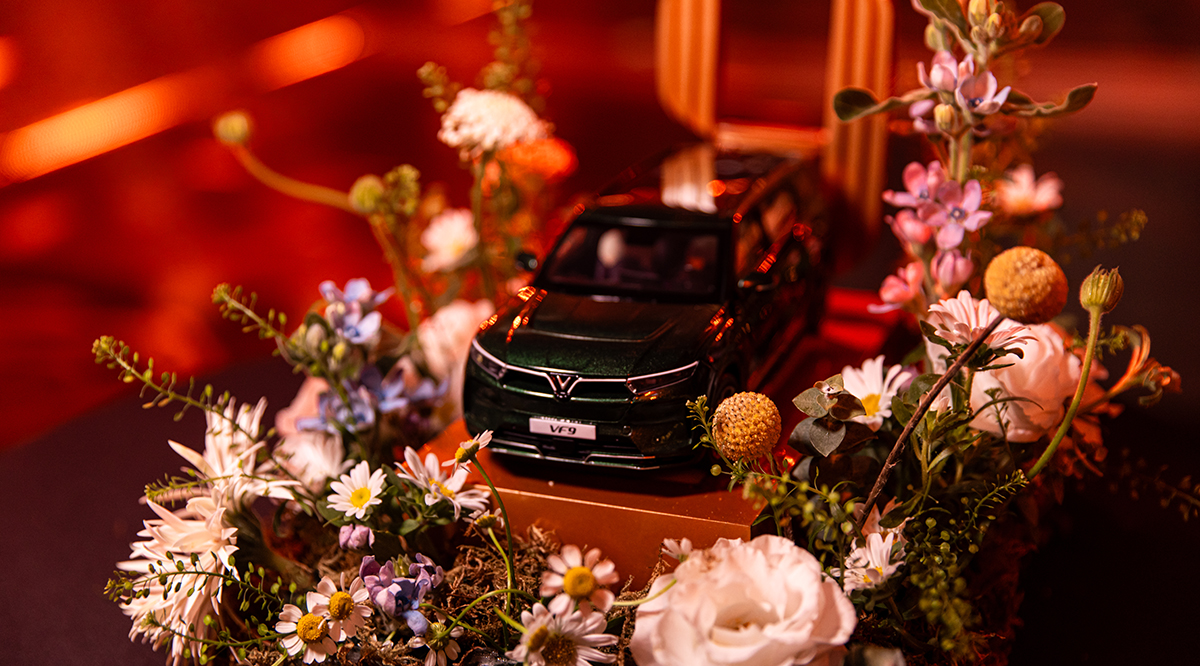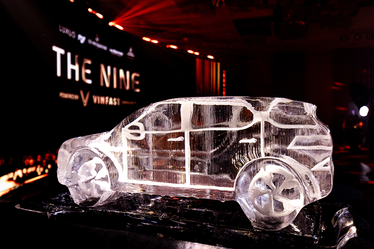 Tâm điểm của sự kiện là chiếc xe VinFast VF 9 màu đen và vàng đồng sang trọng – biểu tượng của công nghệ xanh và thiết kế hiện đại. Tiếp nối với khu vực trưng bày xe là không gian huyền ảo của nghệ thuật ánh sáng và âm nhạc, nơi các vị khách được thưởng thức những món ăn hảo hạng từ menu “THE NINE” và 9 loại cocktail đặc biệt được sáng tạo riêng cho sự kiện. Đặc biệt, phía sau mỗi màn trình diễn là hình ảnh những sáng kiến xanh đã được triển khai trên khắp Việt Nam, truyền cảm hứng mạnh mẽ cho lối sống xanh và bền vững.