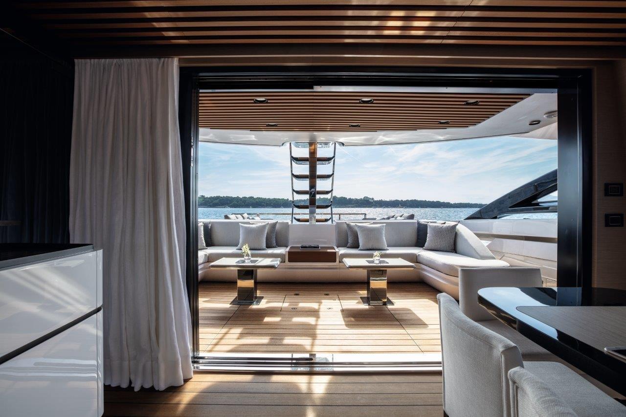 Phiên bản S6 cũng rất thành công khi được ra mắt như một phần của biểu tượng Times Square vào mùa xuân năm ngoái. Mẫu du thuyền này duy trì phần lớn DNA bộ sưu tập với phong cách thể thao và bóng bẩy. Những cải tiến mới bao gồm phòng khách mở rộng và thoải mái trên mái buồng hoa tiêu. Các thành viên trên tàu cũng có thể dễ dàng di chuyển đến khoang buồng lái và trạm bánh lái thứ hai thông qua cầu thang có thể thu vào.
