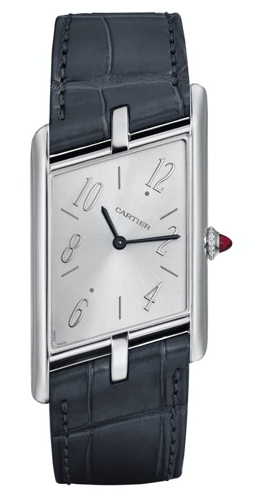 Năm 2020, Cartier ra mắt mẫu đồng hồ với định dạng cổ điển chỉ hiển thị giờ cũng như bộ máy lộ cơ đầu tiên cho dòng sản phẩm Tank Asymétrique.