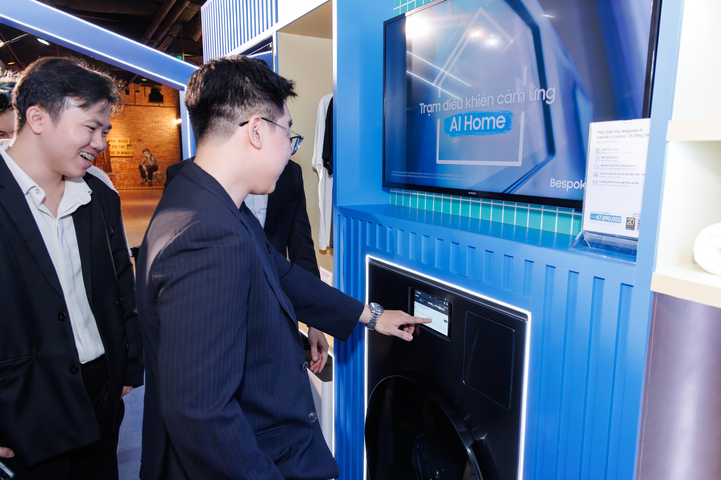 Khách hàng trải nghiệm máy giặt sấy bơm nhiệt Bespoke AI Laundry Combo, tích hợp công nghệ giặt AI Wash và sấy bơm nhiệt AI