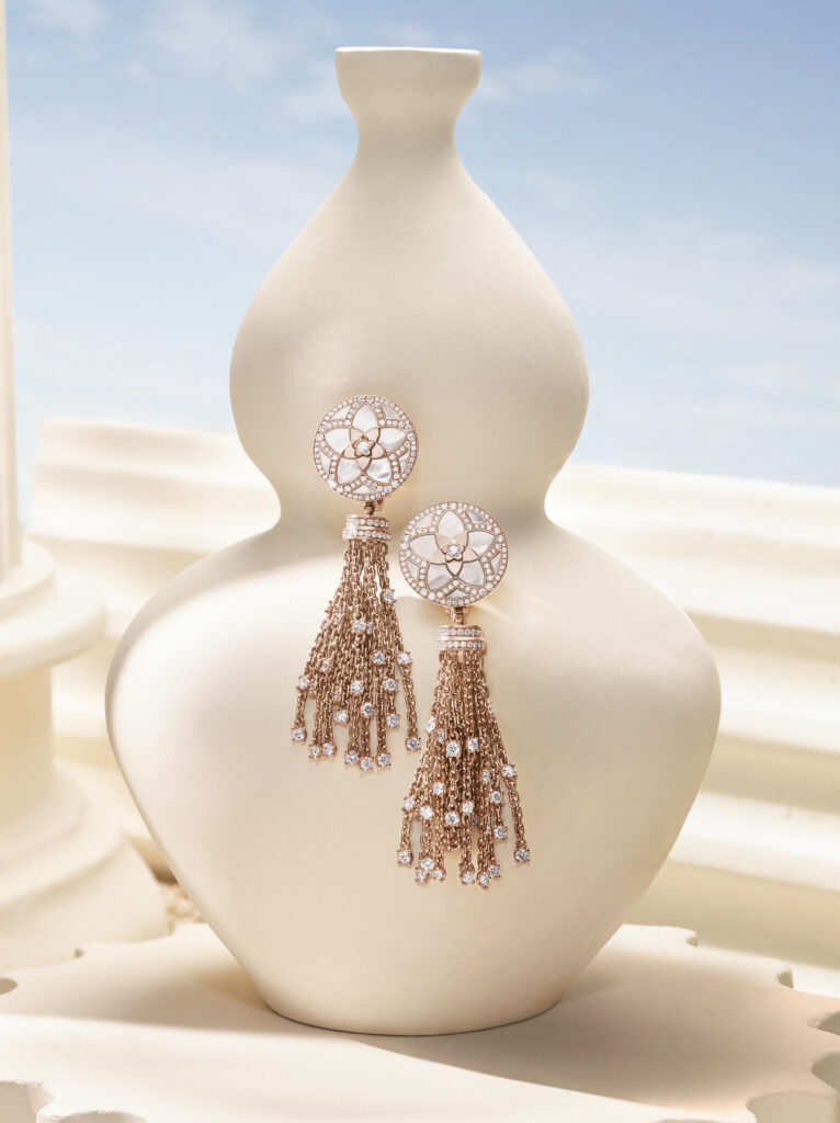 Tất cả sáu sản phẩm trong bộ sưu tập độc quyền của UAE – bao gồm một đôi bông tai đinh tán, vòng tay, sautoir và vòng cổ với mặt dây chuyền mô tả hoạ tiết hoa lấy cảm hứng từ khảm quý giá. Sự quyến rũ thoải mái của Channeling là nổi bật so với một chiếc sautoir và hoa tai thông thường. Cả hai đều được hoàn thiện bằng những tua vàng lấp lánh đính kim cương.