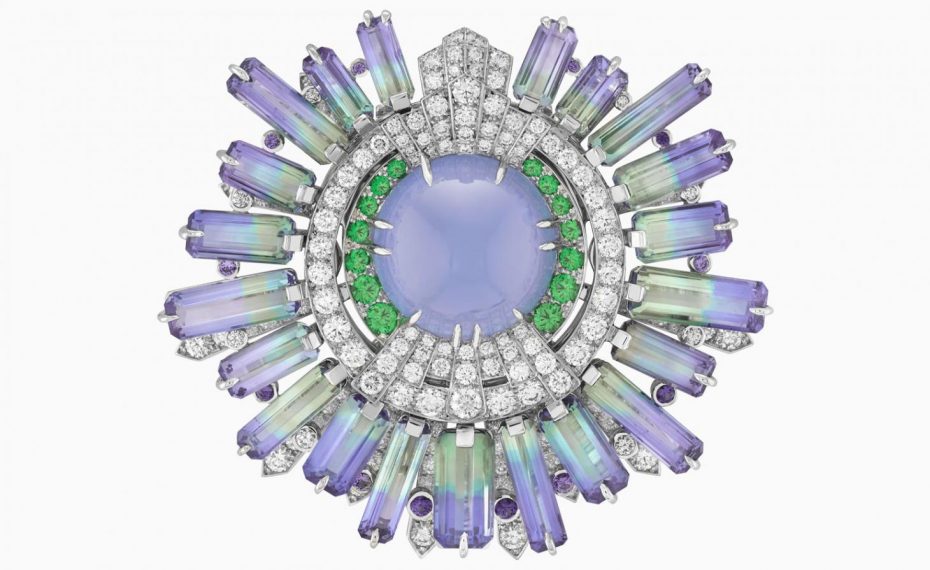 Những món trang sức mới này tập hợp những viên ngọc bích pyrit với chalcedonies và tanzanite được tạo thành các dạng hynisting, với ngọc bích màu hoa cà và san hô tạo thêm điểm nhấn thiên đường cho chiếc vòng tay. Trong cái đính áo Saturne, những chiếc vòng bằng kim cương bao quanh nửa quả cầu bằng vàng được rèn tròn, với những sợi vàng nổi lên làm cho tuyệt tác trở nên vô cùng sống động.