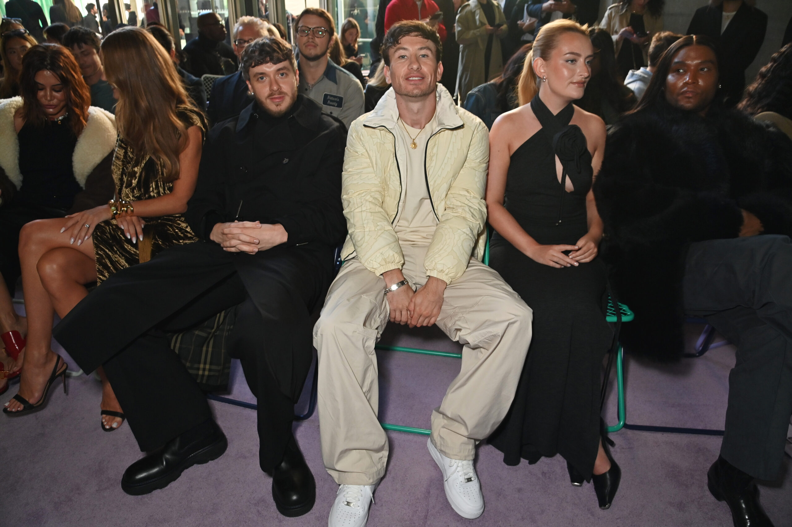 Burberry Summer 2025 Show – Front Row Next → Từ trái sang: Jack Harlow, Barry Keoghan và Amelia Dimoldenberg tham dự show diễn. Ảnh:Burberry.