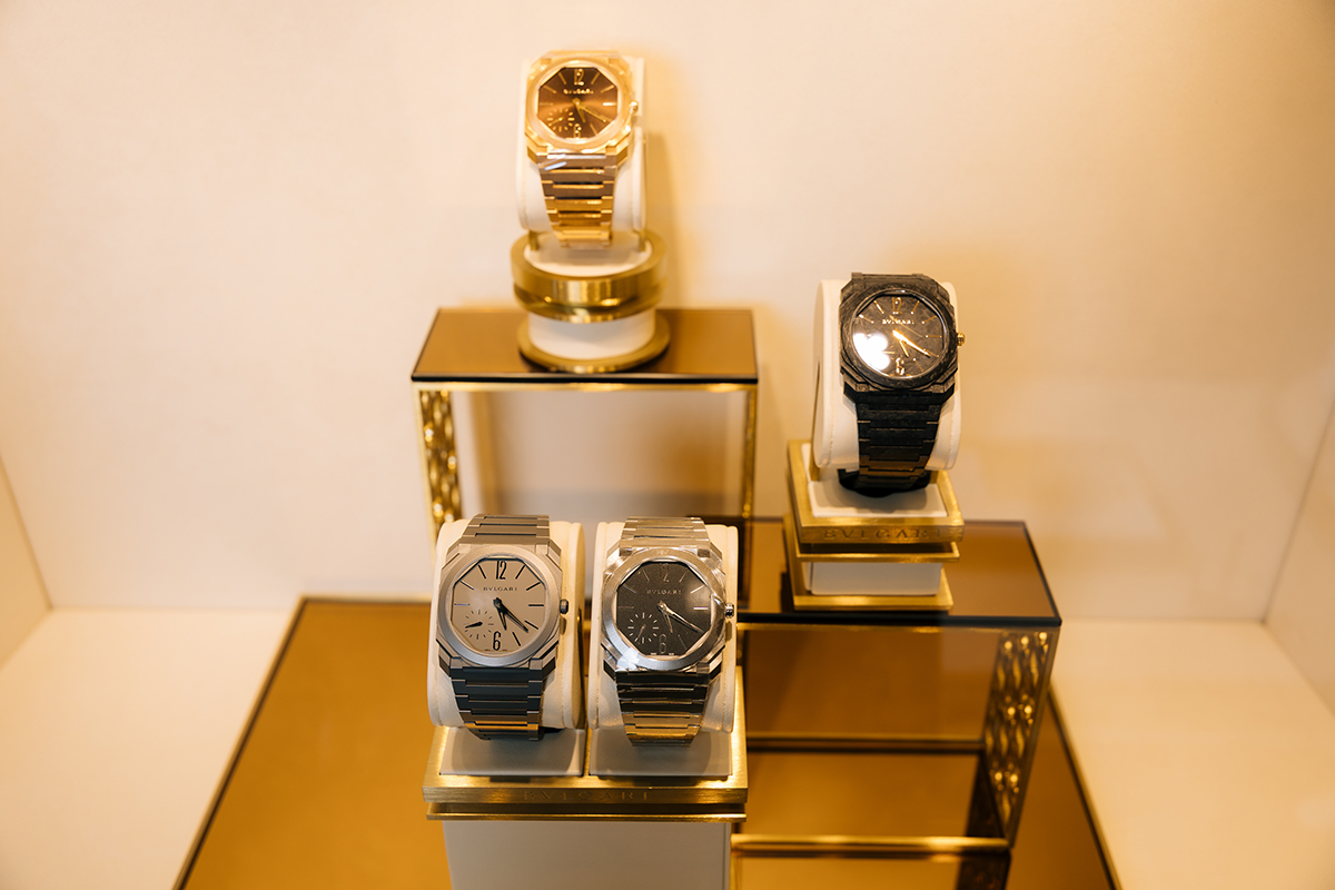Tại khu vực trưng bày trang sức của Bvlgari, vẻ đẹp tinh tế và giá trị vượt thời gian được thể hiện qua từng đường nét thủ công tỉ mỉ trên các mẫu trang sức biểu tượng Serpenti, Divas’ Dream, và B.Zero1. Sự tinh xảo này tiếp tục được thể hiện qua các bộ sưu tập đồng hồ, từ nét quyến rũ lộng lẫy và uyển chuyển của Serpenti đến sự tinh tế, chính xác trong từng đường chạm khắc của Octo.
