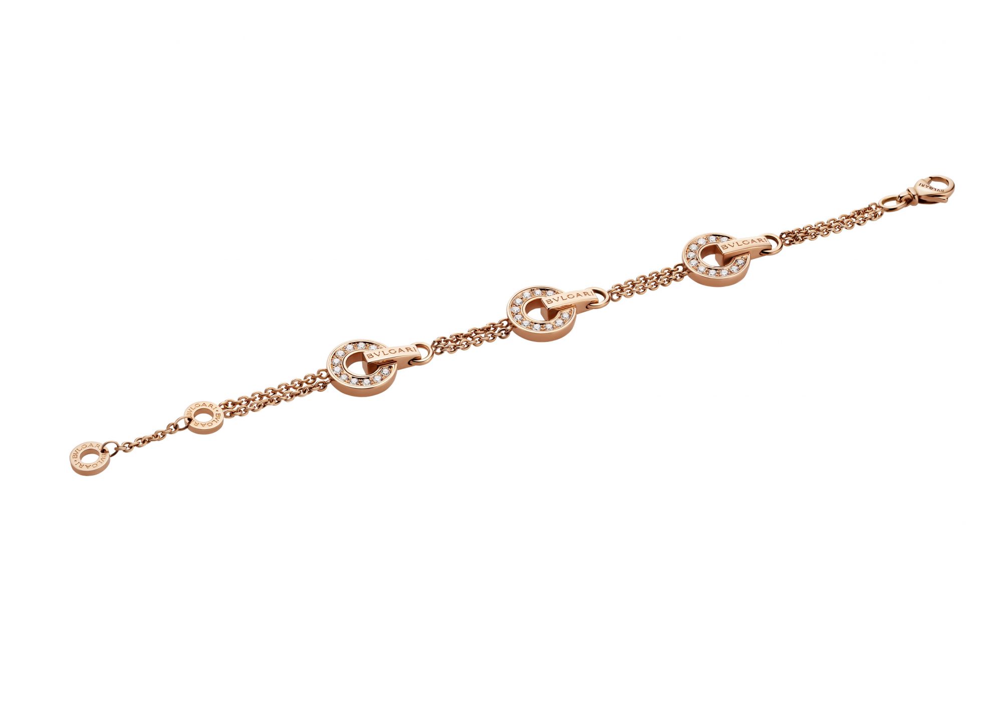 Trái ngược với các bộ sưu tập trước đó, logo Bvlgari kép đặc trưng trên họa tiết hình tròn được nâng cấp với thiết kế đục lỗ openwork. Có sẵn bằng vàng trắng và vàng hồng, các vòng tròn được tô điểm bằng đá malachite sọc và xà cừ trắng ánh kim. Những viên kim cương được cắt gọt rực rỡ bao quanh toàn bộ dáng vòng, đưa món trang sức giản dị đến một chân trời mới của vẻ đẹp sang trọng. Hoàn thành thiết kế mới lạ là tấm thẻ thương hiệu hiệu dày, đan xen, tạo cho các bản thiết kế Bvlgari không thể nhầm lẫn. Thiết kế độc đáo gợi lên nét quyến rũ đơn giản của kiến trúc La Mã đồng thời gói gọn sự quyến rũ hàng ngày.