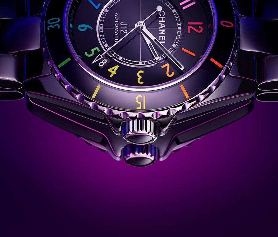 Lấy cảm hứng từ nguồn năng lượng của âm nhạc điện tử, CHANEL sáng tạo lại đồng hồ J12, biểu tượng của ngành chế tác đồng hồ thế kỷ 21 với kiểu dáng mạnh mẽ, bền bỉ bằng thép và gốm đen, nổi bật với các chữ số bằng màu sắc rực rỡ.