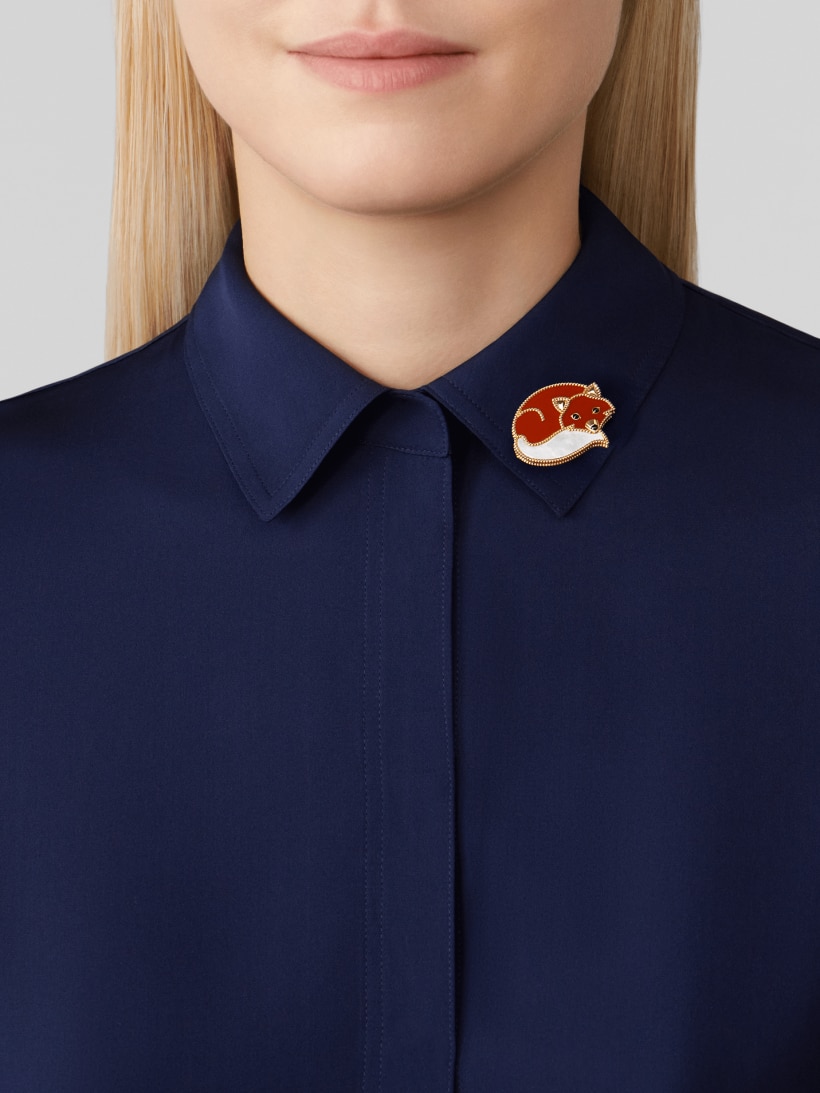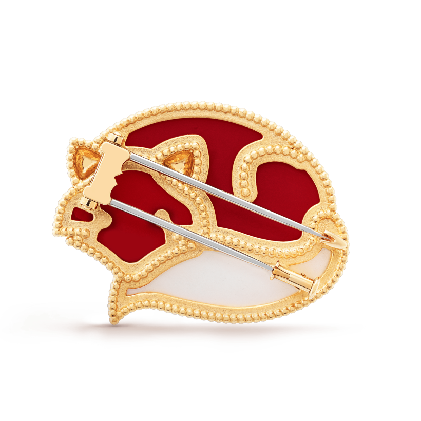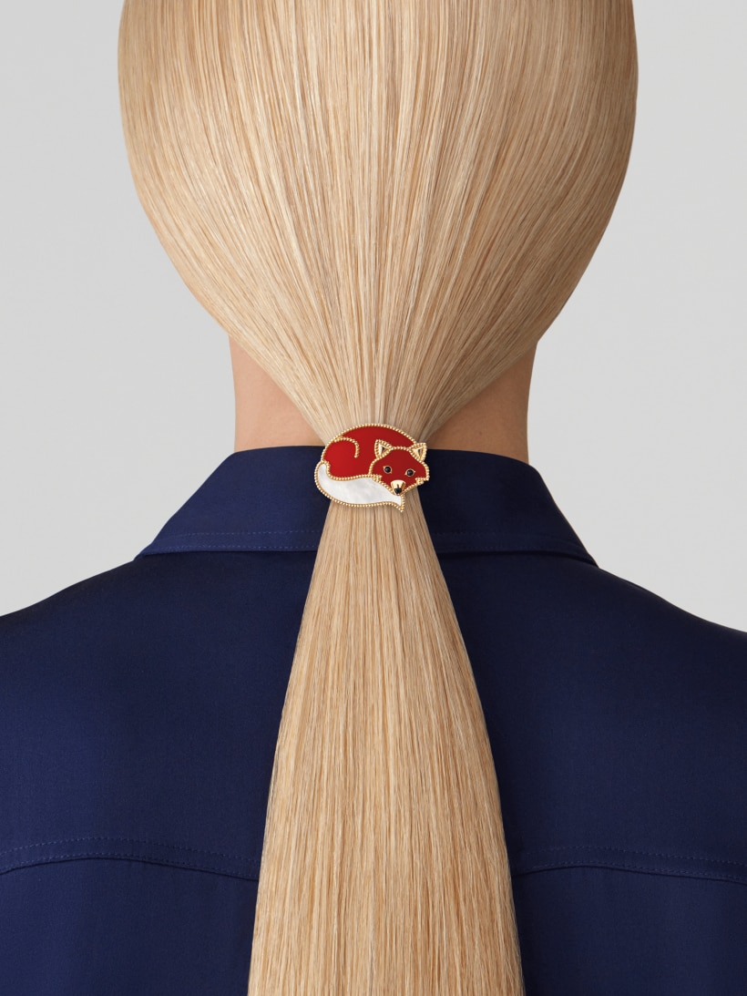 Chiếc kẹp Lucky Animals Fox độc đáo sở hữu giao diện tương tự như con cáo đỏ, được làm từ chất liệu như vàng 19K, xà cừ và đá trang trí (ornamental stone). Đây sẽ là món quà tinh nghịch và đáng yêu dành đến cho các bạn nữ ngày Valentine.