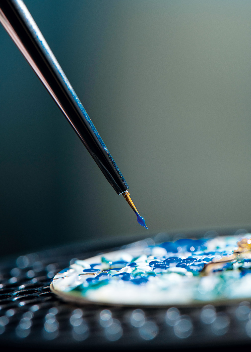 - Bức tiểu họa trên mặt đồng hồ được vẽ hoàn toàn thủ công