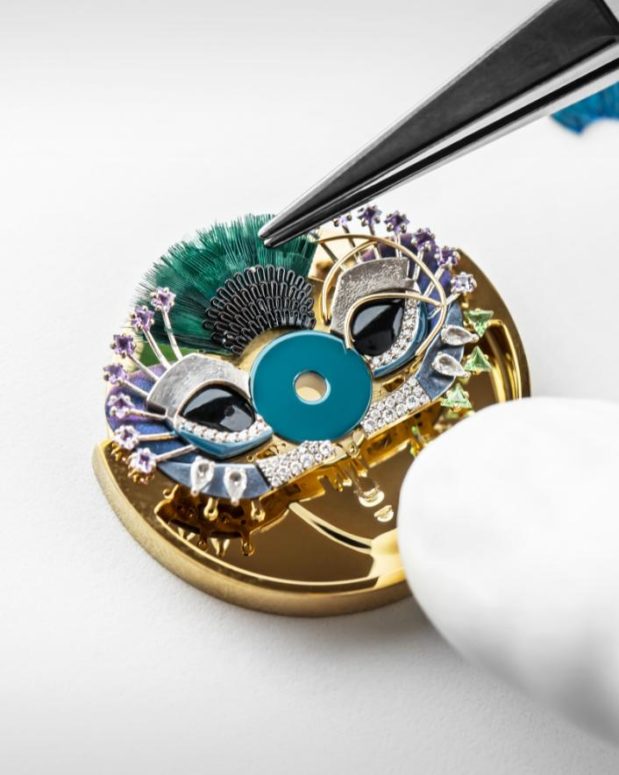 Trong các lần ra mắt trước đây, bộ sưu tập Dior Gand Bal Plume đã vẽ lên di sản thời trang cao cấp của Dior, thường được tô điểm bằng hoa, hoặc đôi khi là kiến ​​trúc baroque trang trí công phu của chính Nhà hát lớn, tái tạo hình ảnh biểu tượng của Paris bằng vải và váy lông vũ – tất cả được chuyển sang mặt số đầy màu sắc được trang trí bằng những viên kim cương lấp lánh – một điệu nhảy Rigaudon được đưa vào trong những chiếc đồng hồ.