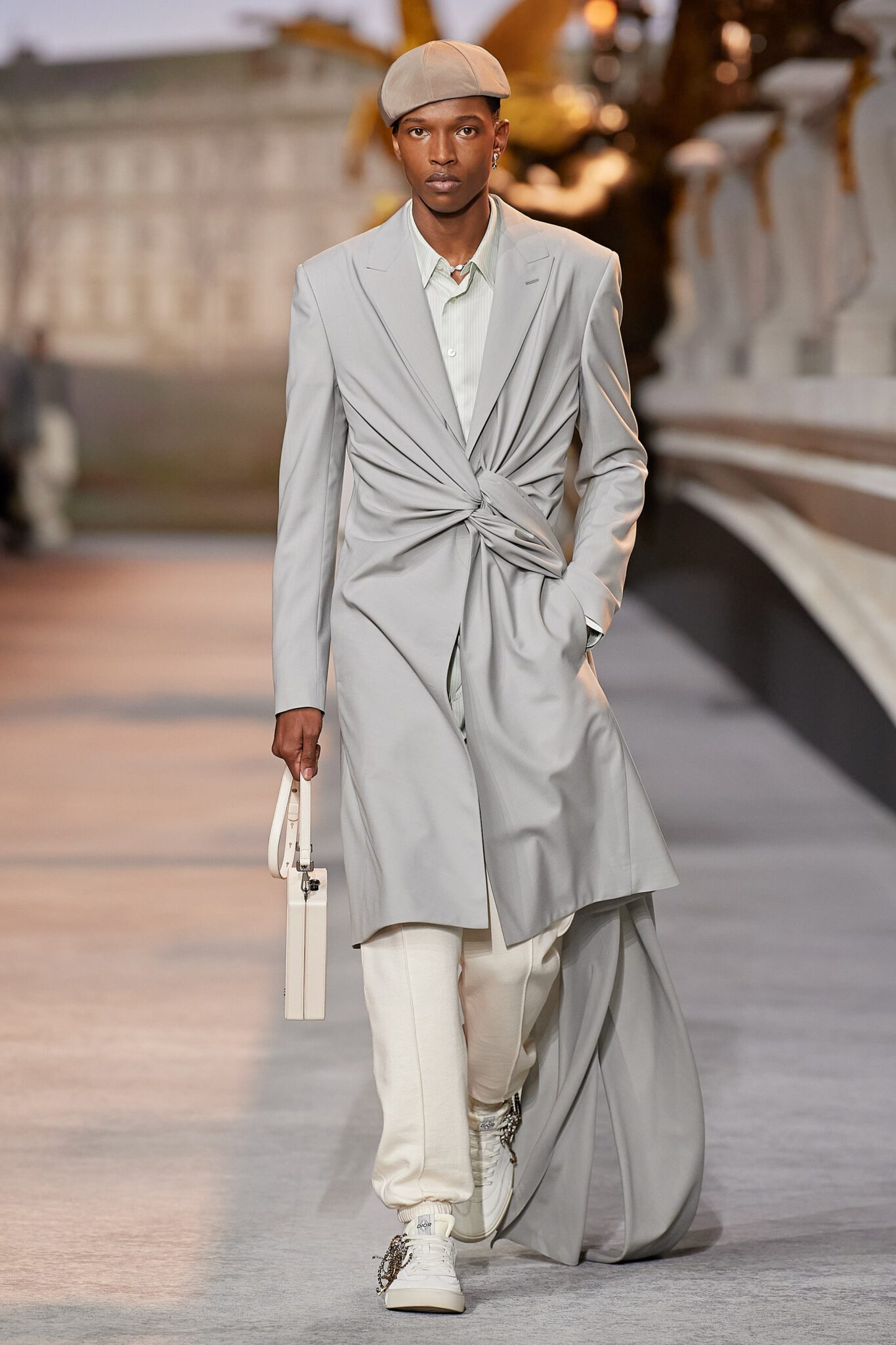 Kim Jones còn không ngừng thách thức bản thân mình khi tạo ra những chiếc áo khoác Bar huyền thoại, phiên bản dành cho nam giới được thiết kế riêng và chạm khắc tinh xảo với vô số họa tiết. Không có thắt lưng thắt chặt vòng eo như phiên bản truyền thống nhưng vài thiết kế lại được biến tấu có thắt lưng nhẹ ở eo.