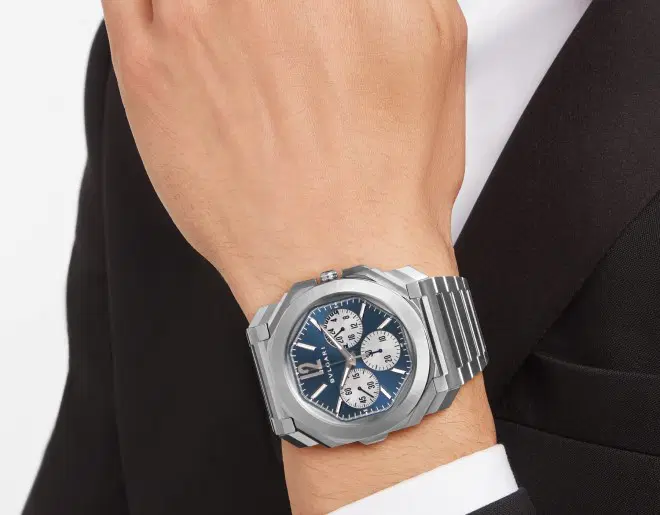 Đề cử tiếp theo của tôi thuộc hạng mục những thiết kế bắt mắt là chiếc Bvlgari Octo Finissimo S Chronograph GMT (Ref. 103467) từng xuất hiện trong sự kiện LVMH Watch Week 2021. So với Finissimo thông thường, dòng đồng hồ phụ Octo Finissimo S được thiết kế để nâng cao độ bền cùng khả năng chống nước bằng cách ứng dụng núm vặn dạng ốc vít, bộ vỏ dày hơn và thể thao hơn. Sự tiến hóa này đã được ghi nhận trong dòng đồng hồ chỉ có chức năng cơ bản, nhưng giờ đây là trên dòng chronograph.