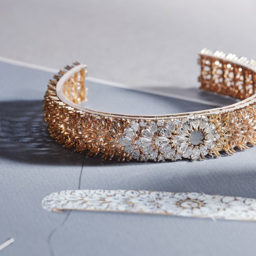Chiếc vòng được đính 996 viên kim cương được cắt gọt tinh xảo theo nhiều kích thước khác nhau, phù hợp với từng vị trí trên đường uốn lượn tinh tế. 144 viên kim cương griffe-set và 852 viên kim cương grain-set đã kết hợp cùng nhau để tối đa hóa hiệu ứng ba chiều, khiến ánh sáng phản chiếu càng thêm phần rực rỡ.