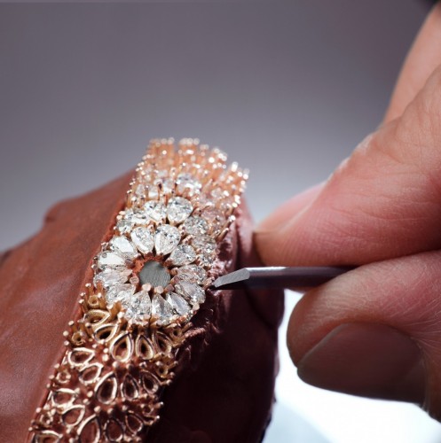 Với 904 viên kim cương (20,9 carat), trong đó có 204 viên hình quả lê và số còn lại được cắt theo các kiểu cách tinh xảo khác, chỉ riêng việc tinh chế đá cũng đủ để mất đến hơn 130 giờ làm việc của nghệ nhân tại xưởng Jaeger-LeCoultre. Hai đường viền bằng vàng xung quanh hỗ trợ cho cấu trúc chiếc vòng được đính kim cương grain-set, kỹ thuật sắp xếp theo đường thẳng trong đó các chấu bằng vàng nhỏ xíu được dựng thẳng để giữ viên kim cương theo cách tinh tế nhất.