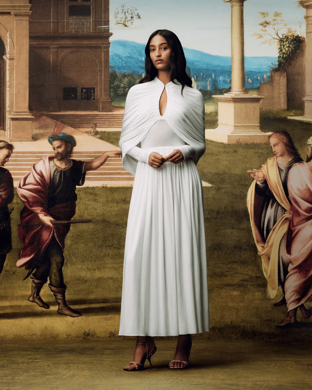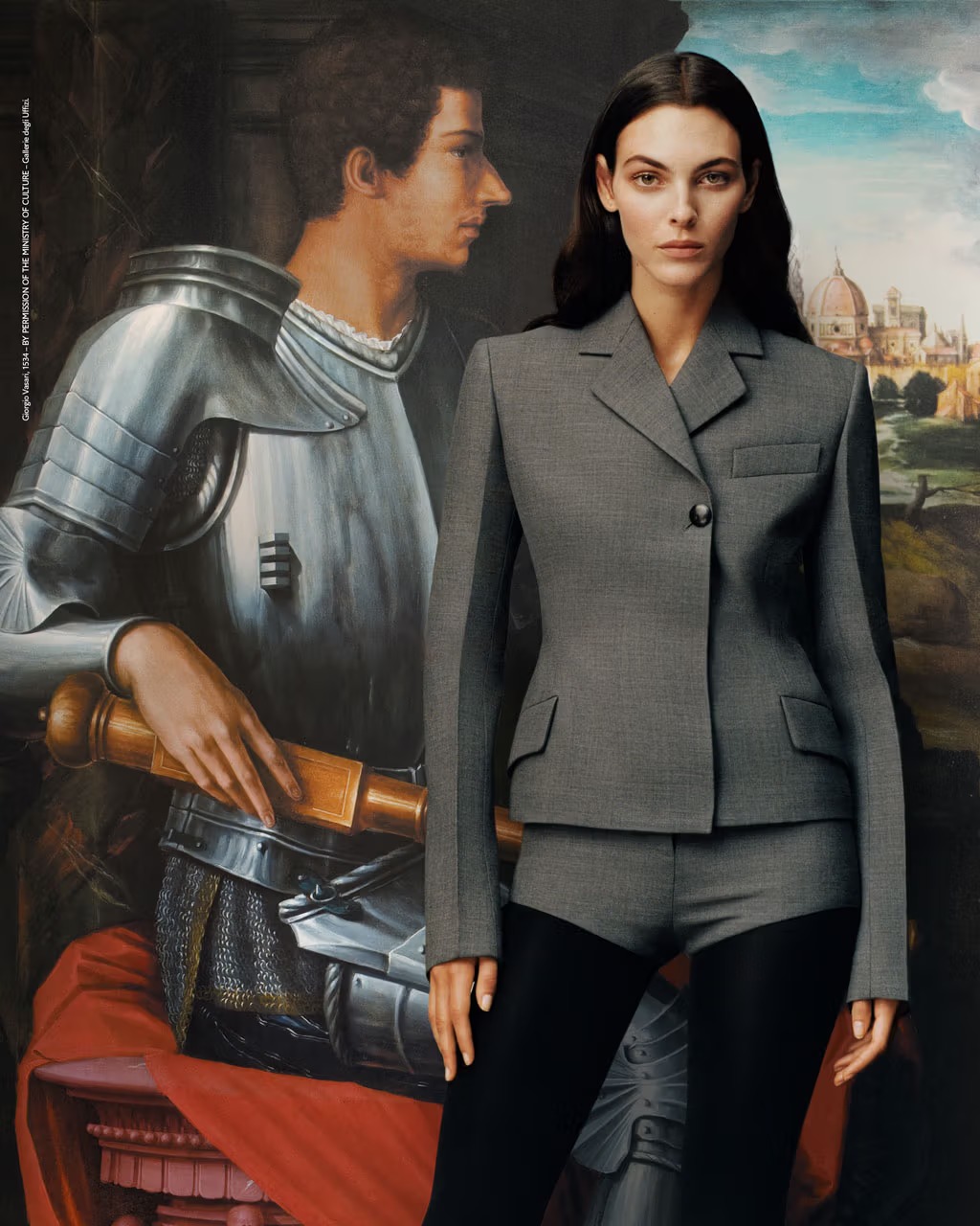 Tyler Mitchell nhiếp ảnh gia danh tiếng đến từ New York là người thực hiện bộ ảnh cho chiến dịch lần này, nó là kết quả của một sự hợp tác hài hòa với Bảo tàng Uffizi, ngôi nhà nổi tiếng tại Ý, bảo tổn và chứa đựng loạt bức tranh lừng danh từ thời kỳ Phục Hưng. Trong bối cảnh này, bộ sưu tập càng trở nên sống động hơn trong một cuộc đối thoại hấp dẫn giữa quá khứ và hiện tại. “Bức chân dung của Alessandro de Medici” của Giorgio Vasari mang đến không gian trang phục tinh tế cho Vittoria Ceretti trong bộ đồ vest lịch lãm, trong khi “Bức hai bề mặt của Federico da Montefeltro và Battista Sforza” của Piero della Francesca mang lại sự tương phản tinh tế với bộ vest màu xanh navy của Taemin Park.