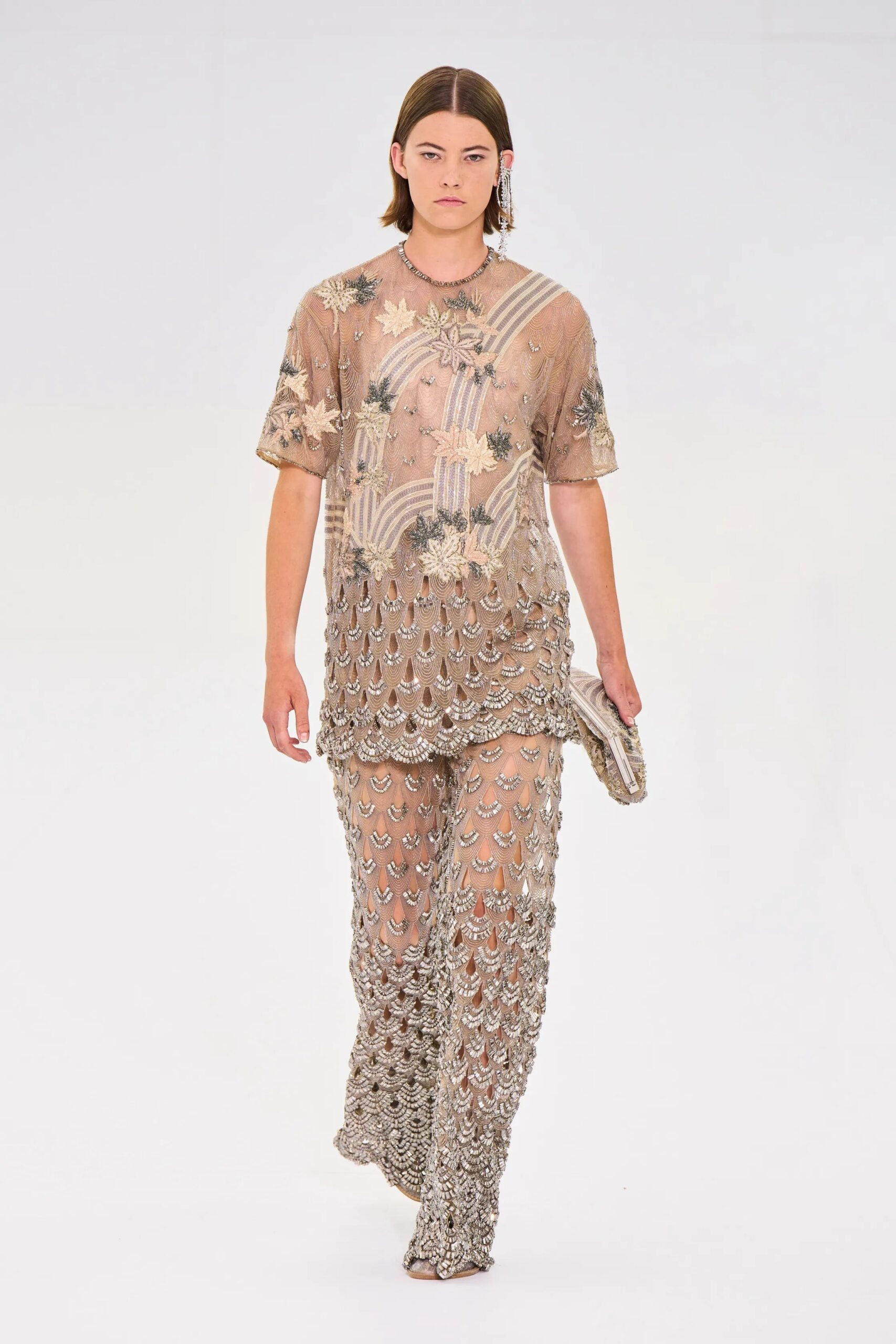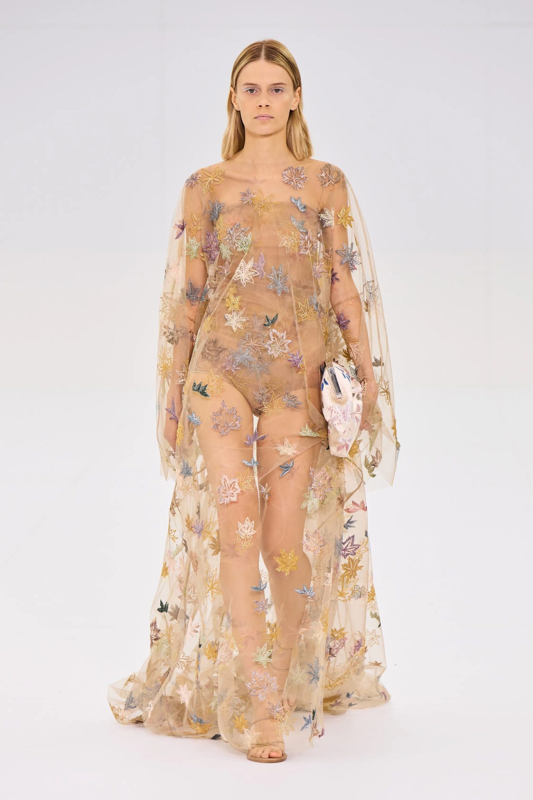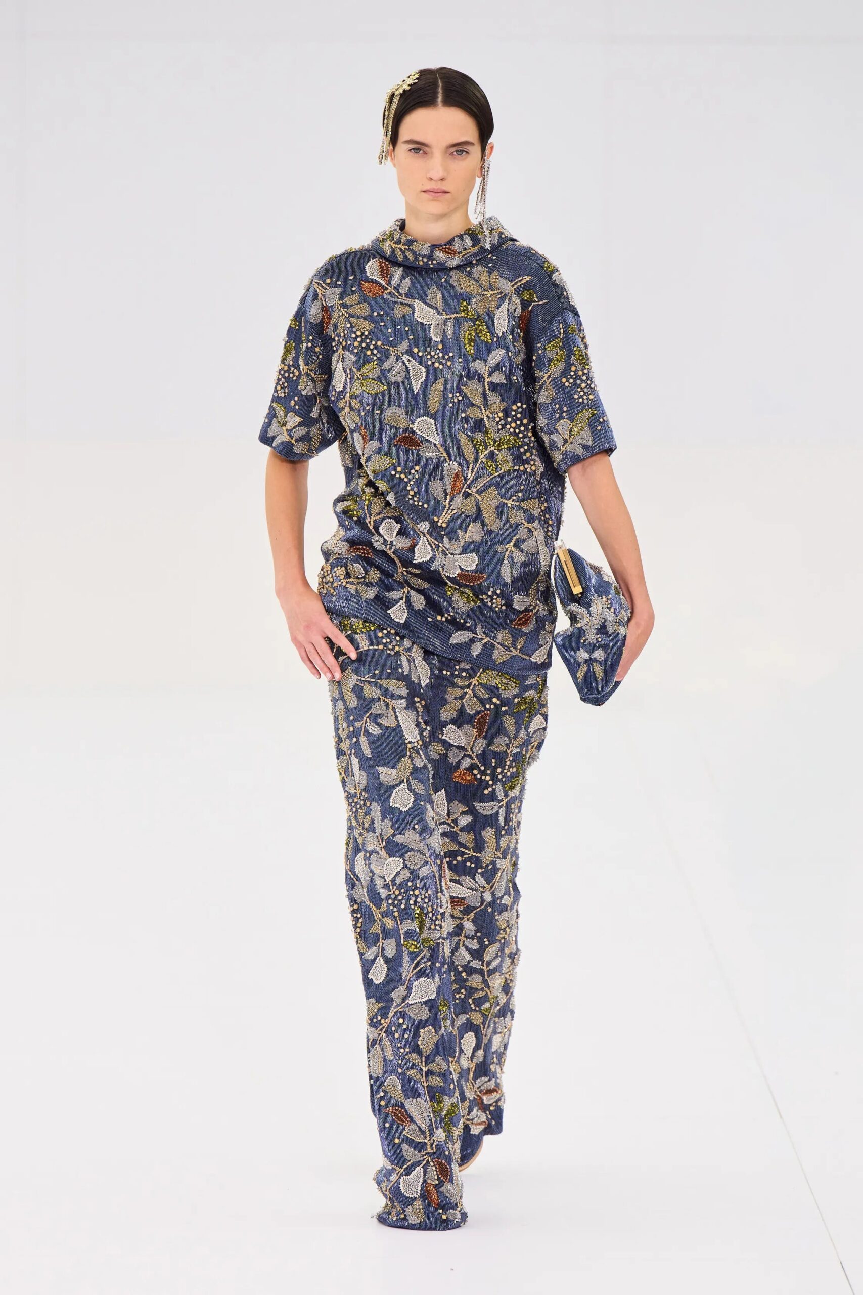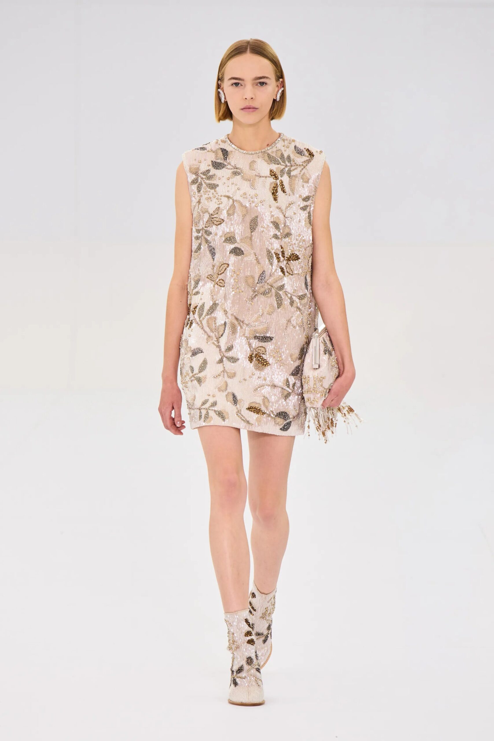 Đó là một mùa thời trang cao cấp lộng lẫy và quyến rũ, với rất nhiều sự “thủ công” dày đặc và lấp lánh. Jones đã mang lại một số bộ váy “gương vỡ”, di sản Fendi của Karl Lagerfeld, vào năm 2000, và tái hiện chiếc váy “nhỏ bé”, ở phiên bản thêu và cực kỳ lấp lánh.