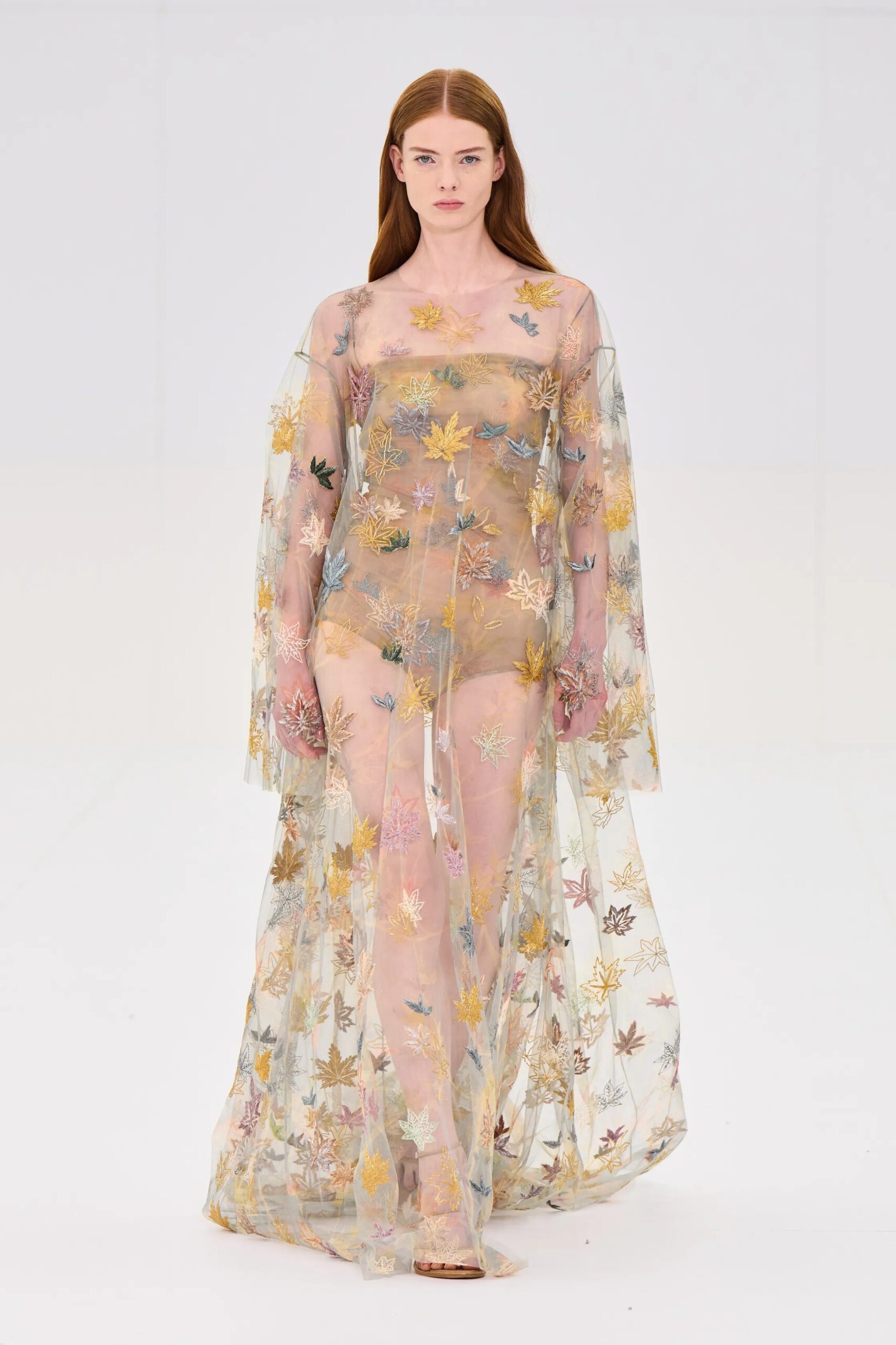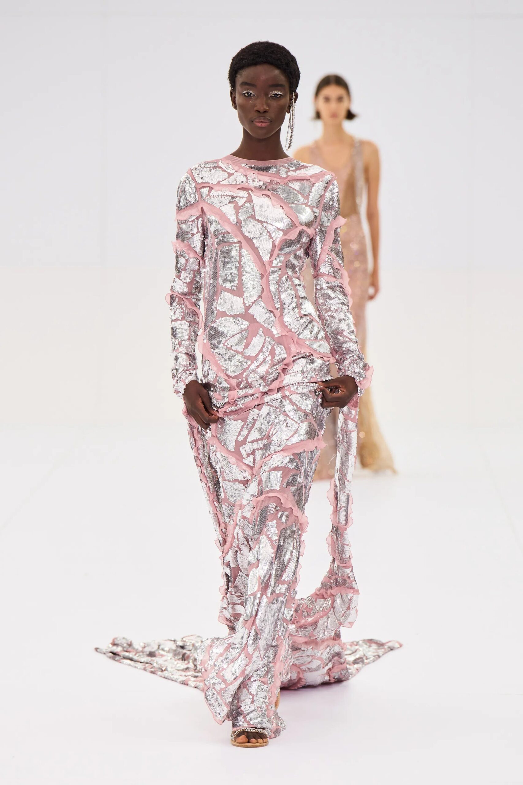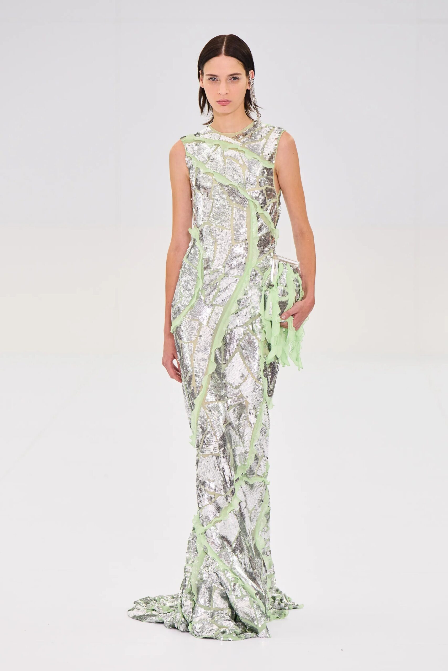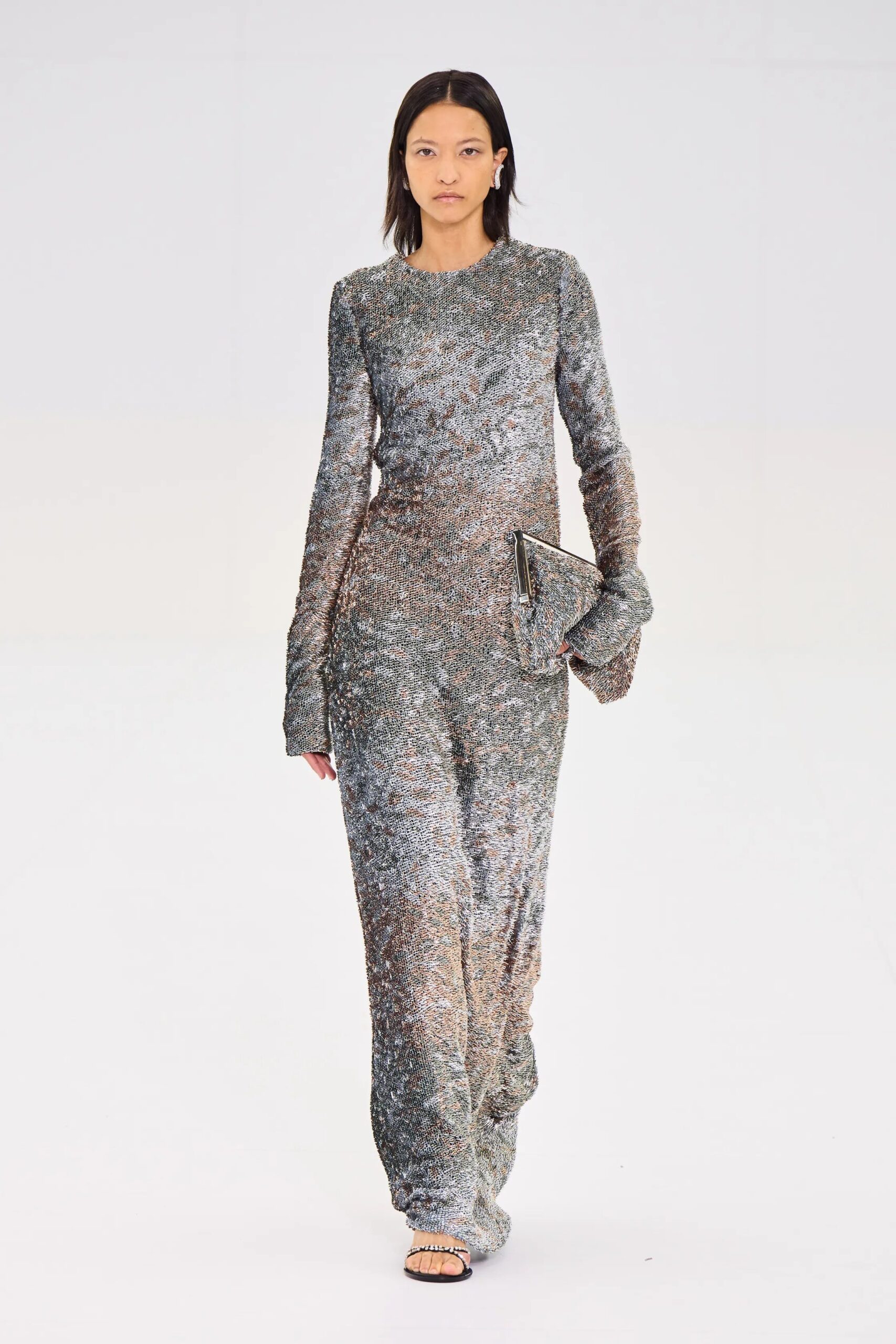 Đó là một mùa thời trang cao cấp lộng lẫy và quyến rũ, với rất nhiều sự “thủ công” dày đặc và lấp lánh. Jones đã mang lại một số bộ váy “gương vỡ”, di sản Fendi của Karl Lagerfeld, vào năm 2000, và tái hiện chiếc váy “nhỏ bé”, ở phiên bản thêu và cực kỳ lấp lánh.