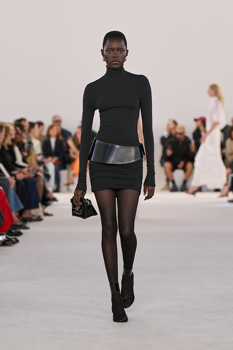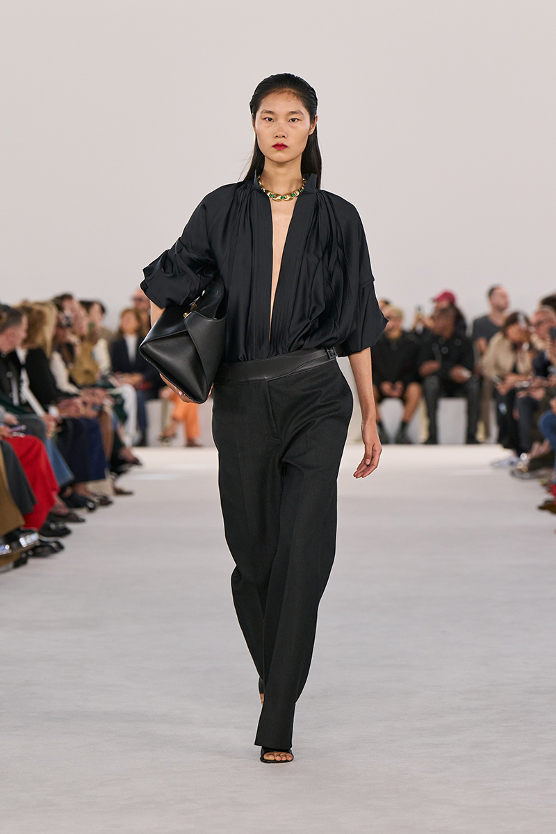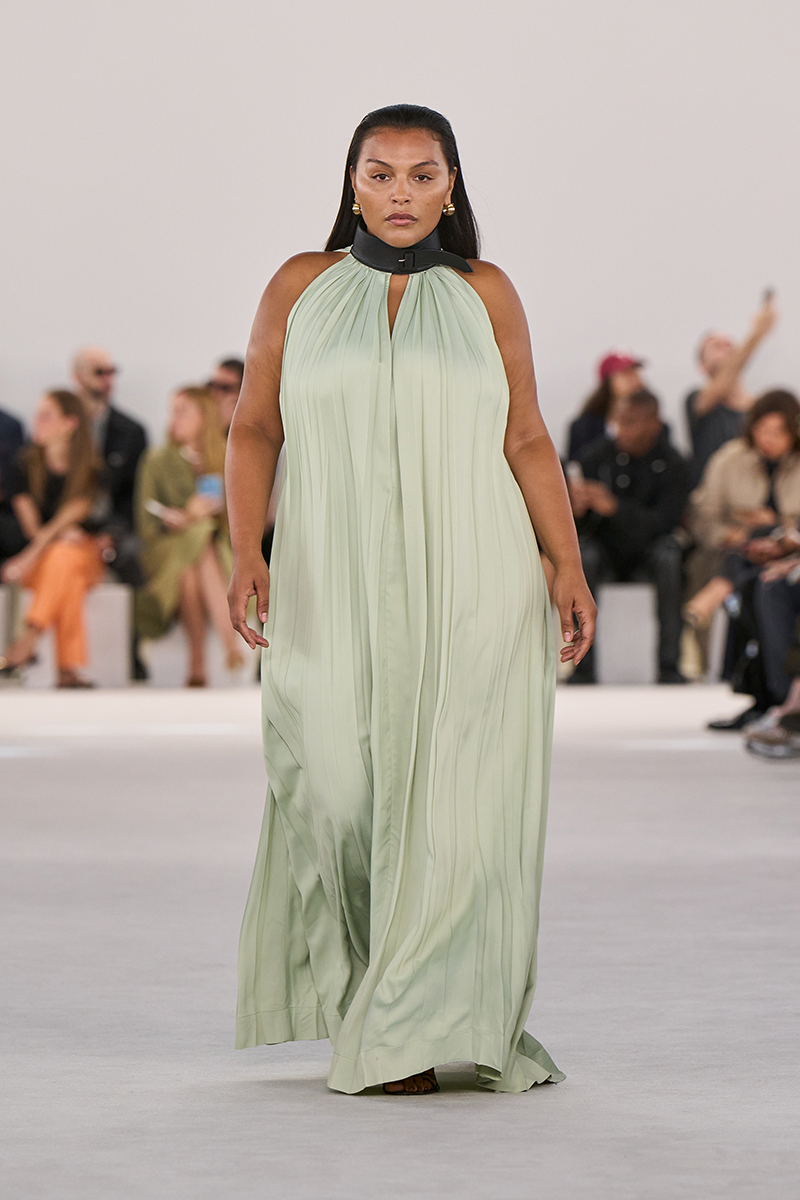 Cho mùa Xuân-Hè 2024, Maximilian Davis khám phá và biến tấu các chất liệu mà anh đã phát triển tại Ferragamo, thấm nhuần nét thẩm mỹ riêng đồng thời khắc họa mối quan hệ giữa sự cân bằng và áp lực. “Tôi muốn mọi thứ có cảm giác nhẹ nhàng hơn, cả về chất liệu vải và kết cấu cũng như về cách mà mọi người muốn mặc”, Davis giải thích.
