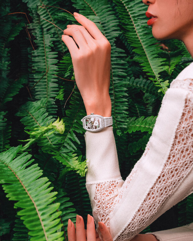 Vanguard Rose Skeleton là một bản giao hưởng hài hòa của tinh thần thời đại và tỉ mỉ, tinh tế của kỹ nghệ chế tác thủ công bậc thầy. Bộ sưu tập đã cài đặt những bông hoa hồng vốn được ví như vẻ đẹp của phái nữ lên bộ máy lộ cơ, là tiếng nói ngầm khẳng định phụ nữ không chỉ mang nét đẹp quyến rũ mà mang trong mình một trái tim kiên cường.
