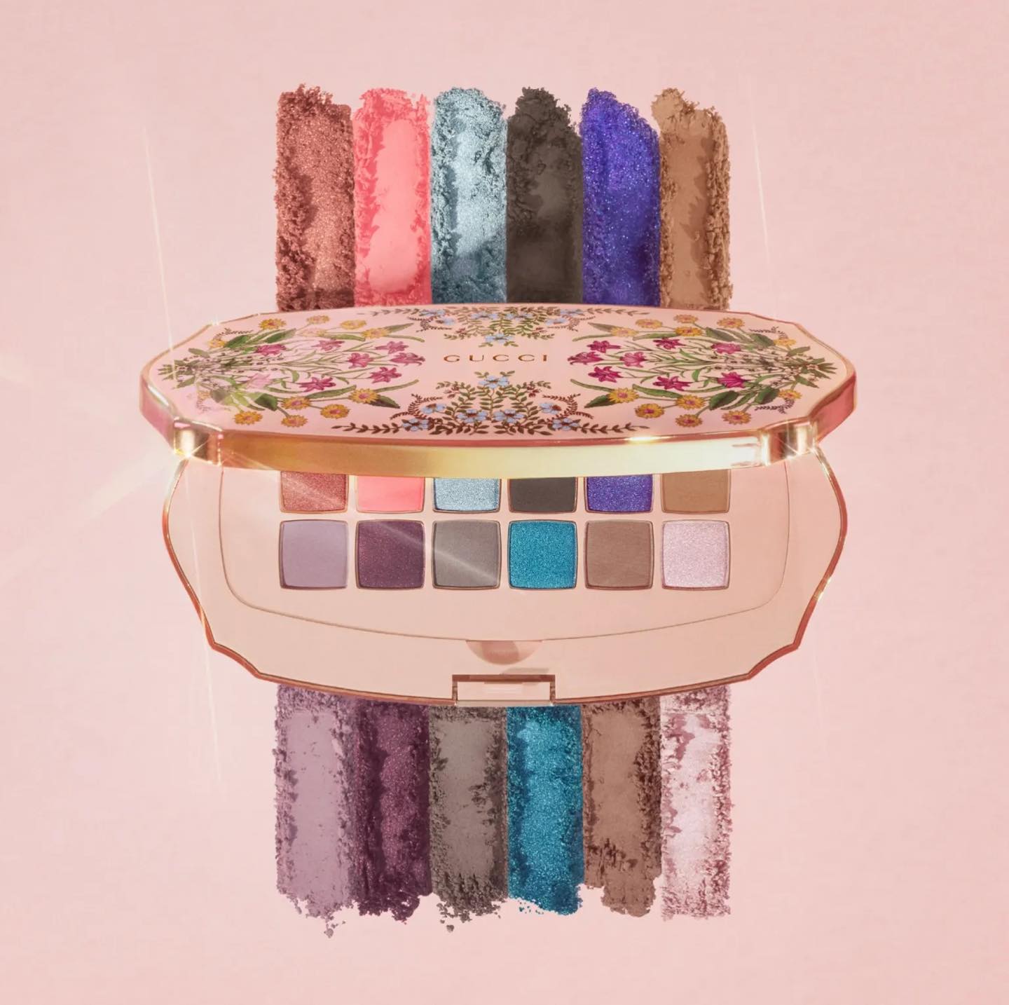 Tiếp tục câu chuyện của Gucci Flora Gorgeous Gardenia Eau de Parfum, bộ đôi trang điểm này là bộ sưu tập đầu tiên được lấy cảm hứng từ hương thơm của nhà mốt nước Ý. Bộ đôi này bao gồm Gucci Palette Beauté Des Yeux Gorgeous Flora — một bảng phấn mắt kết cấu mềm mại sang trọng, và Gucci Rouge De Beauté Brillant Flora – một loại son môi lai giúp cung cấp độ ẩm suốt 24 giờ và có sắc tố cao như một loại son môi thực thụ.