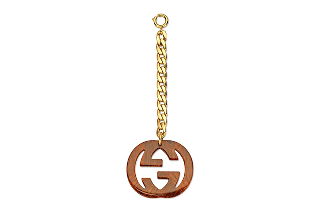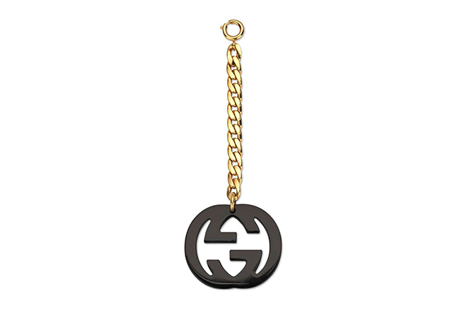 Chiếc kính mát mới xuất hiện với hai phiên bản màu – nâu hoặc đen axetat, với gọng kim loại màu vàng được làm thành hình dây bện. Phần thú vị là các dây xích có thể tháo rời dùng để trang trí. Mỗi dây đều có một charm họa tiết chữ G lồng vào nhau đại diện cho thương hiệu Gucci.