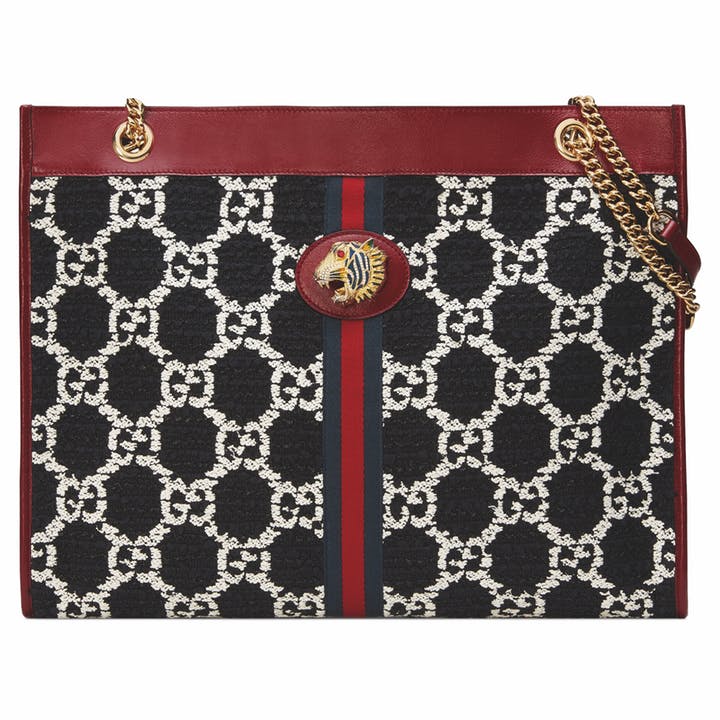 Nổi bật với biểu tượng đầu hổ vàng mạnh mẽ và cách tân, Rajah là chiếc túi tote sành điệu trong chất liệu tweed cao cấp. Đây là dòng túi xách mang màu sắc vintage và retro, nhưng điều đó không có nghĩa, Rajah không dành cho những người phụ nữ hiện đại.