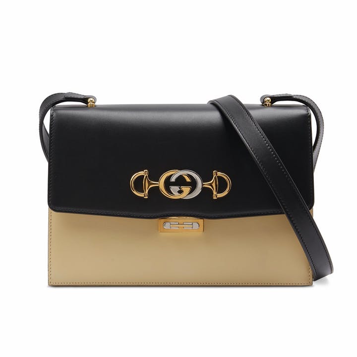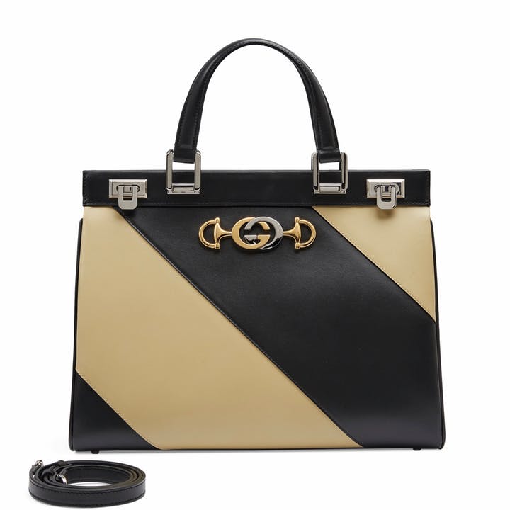 Được mệnh danh là biểu tượng di sản của thương hiệu, thật không bất ngờ khi Gucci Zumi xuất hiện một vẻ riêng trên sàn catwalk trong BST chớm Thu của nhà mốt Ý lừng danh. Mùa này,  Zumi huyền thoại của Gucci khoác lên một gam màu đen-vàng và thiết kế sọc chéo đầy mới mẻ, đi kèm dây đeo vai khiến chiếc túi có thể được sử dụng tùy theo sự sáng tạo của mỗi người.