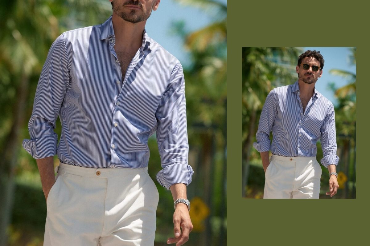 Trong cách phối đồ, các kiểu áo sơ mi đi chơi phát huy trọn vẹn sức hút khi kết hợp với quần short, chinos, giày sandal hoặc sneaker trắng, đều là những lựa chọn vừa thoải mái vừa giữ được sự tinh gọn. Đây là kiểu trang phục dành riêng cho những chuyến du lịch, những buổi dạo phố hay bãi biển mùa hè, nơi người đàn ông được quyền thả lỏng và thể hiện sự trẻ trung của mình mà không làm mất đi vẻ tinh tế. Chính vì vậy, sơ mi đi chơi mang tính “giới hạn về không gian”, nhưng khi xuất hiện đúng chỗ, nó trở thành điểm nhấn thú vị, giúp diện mạo thêm phần sống động và cuốn hút.