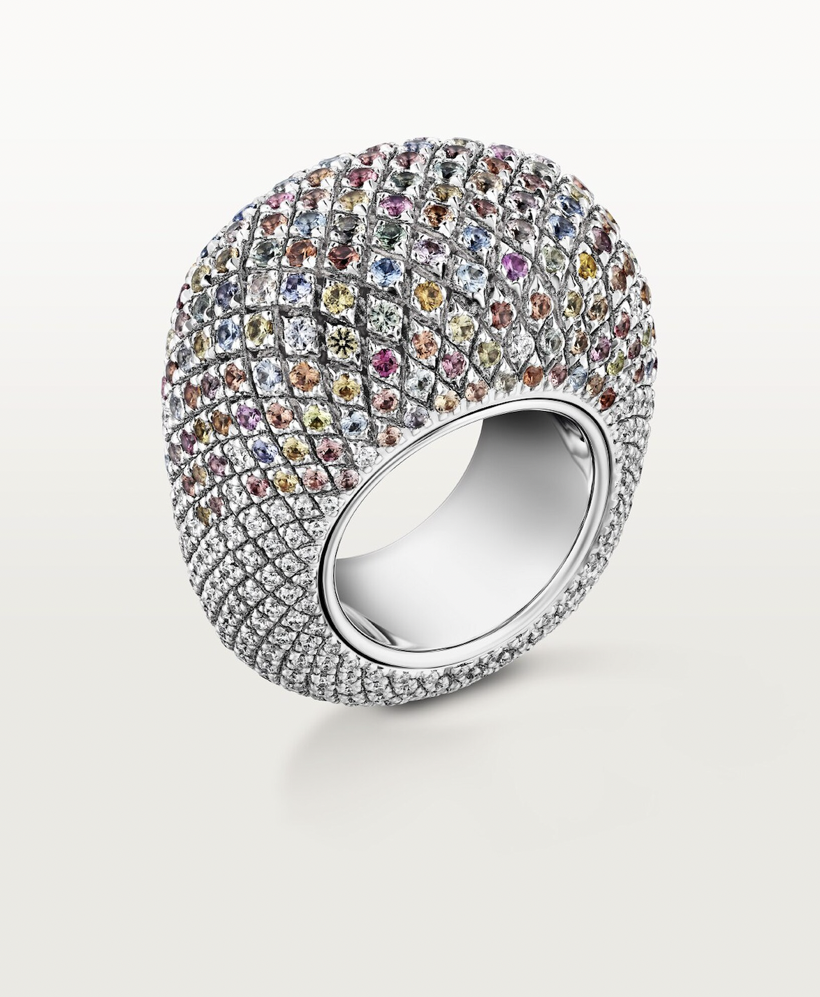 Nhẫn Coussin de Cartier, sau thành công trong lần ra mắt vào năm 2022, tiếp tục trở lại trong bộ sưu tập Libre với một thiết kế đầy sáng tạo và tinh tế. Với kiểu dáng tròn đầy, chiếc nhẫn này gợi lên hình ảnh một viên đá quý khổng lồ, mang đến vẻ đẹp sang trọng và quyến rũ. Được chế tác với kỹ thuật độc đáo, chiếc nhẫn không chỉ cuốn hút với những viên đá quý lấp lánh mà còn thể hiện sự linh hoạt đầy bất ngờ, giống như một món trang sức sống động, đáp ứng nhẹ nhàng với mỗi chuyển động. Phiên bản mới của nhẫn Coussin de Cartier còn được điểm xuyết với sự rực rỡ của những viên đá quý màu sắc cầu vồng, mang lại một sức sống mới mẻ và đầy ấn tượng cho thiết kế này.
