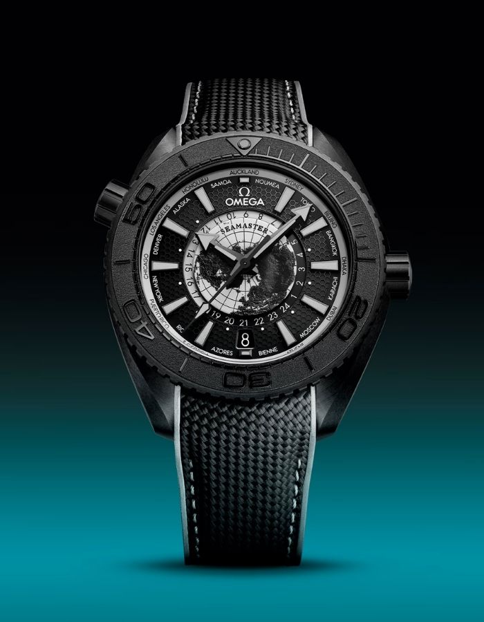 Hai mươi năm sau, Omega kỷ niệm sinh nhật Planet Ocean bằng bộ sưu tập mang tầm toàn cầu với hai phiên bản Planet Ocean Worldtimer. Mỗi chiếc đồng hồ 45,5mm sở hữu vỏ gốm đen, vòng bezel gốm tương đồng với thang đo lặn nổi, cùng mặt số trung tâm bằng titan cấp 5, khắc laser bản đồ địa hình nhìn từ cực Bắc.