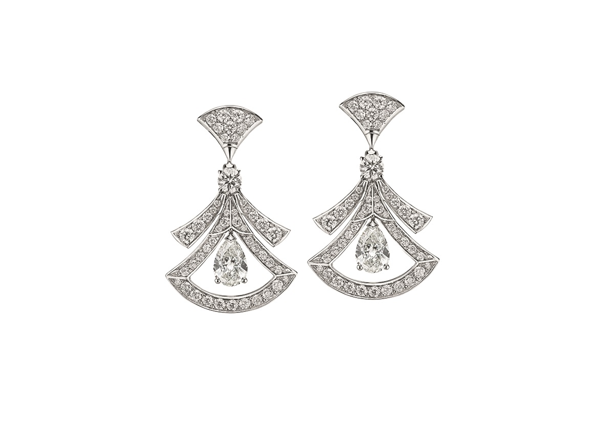 OR859155 ← Previous Next → Hoa tai Divas’ Dream bằng vàng trắng 18 kt đính hai viên kim cương giác cắt quả lê (1,40 ct) và hai viên kim cương cắt tròn (0,30 ct).